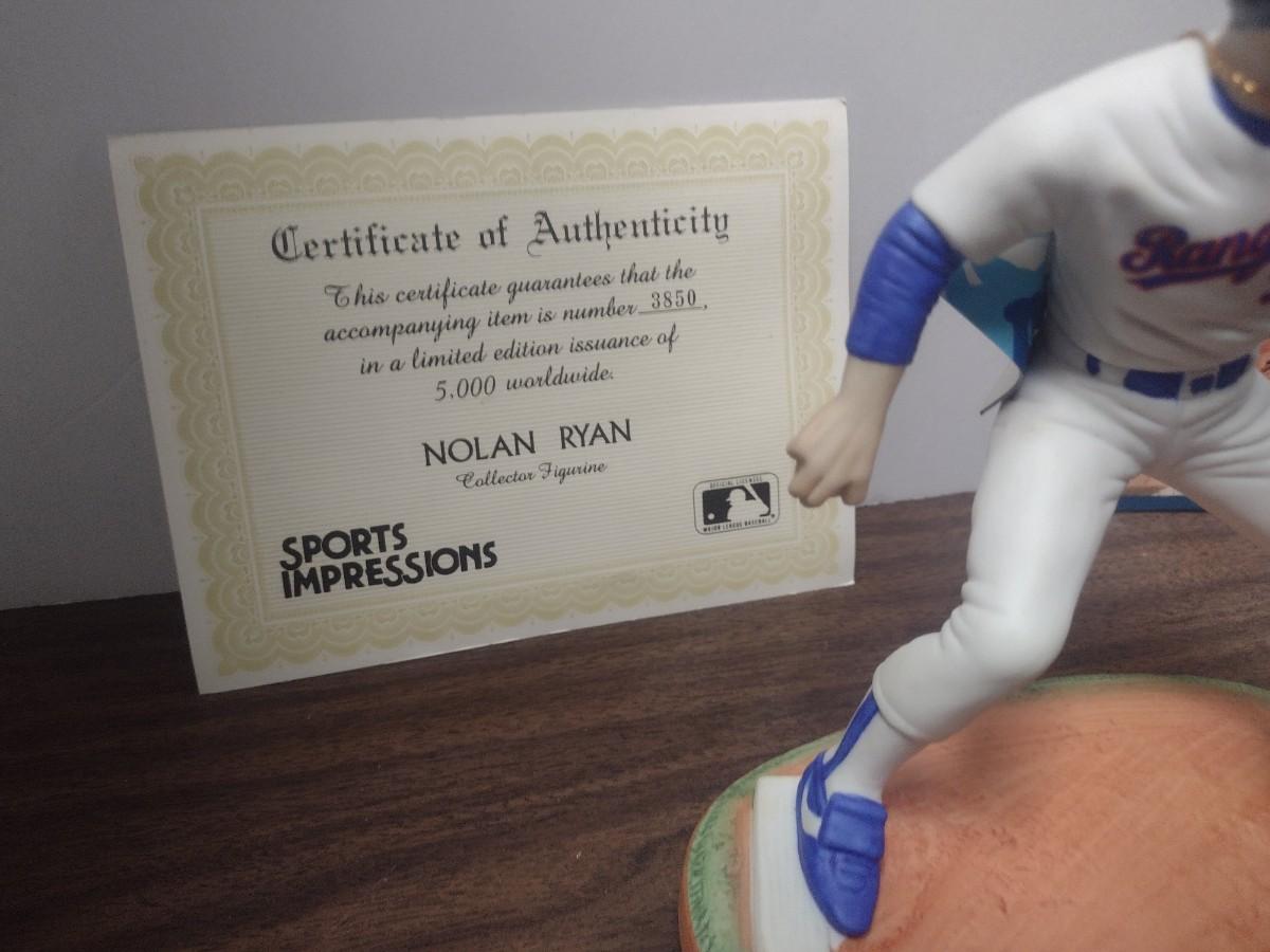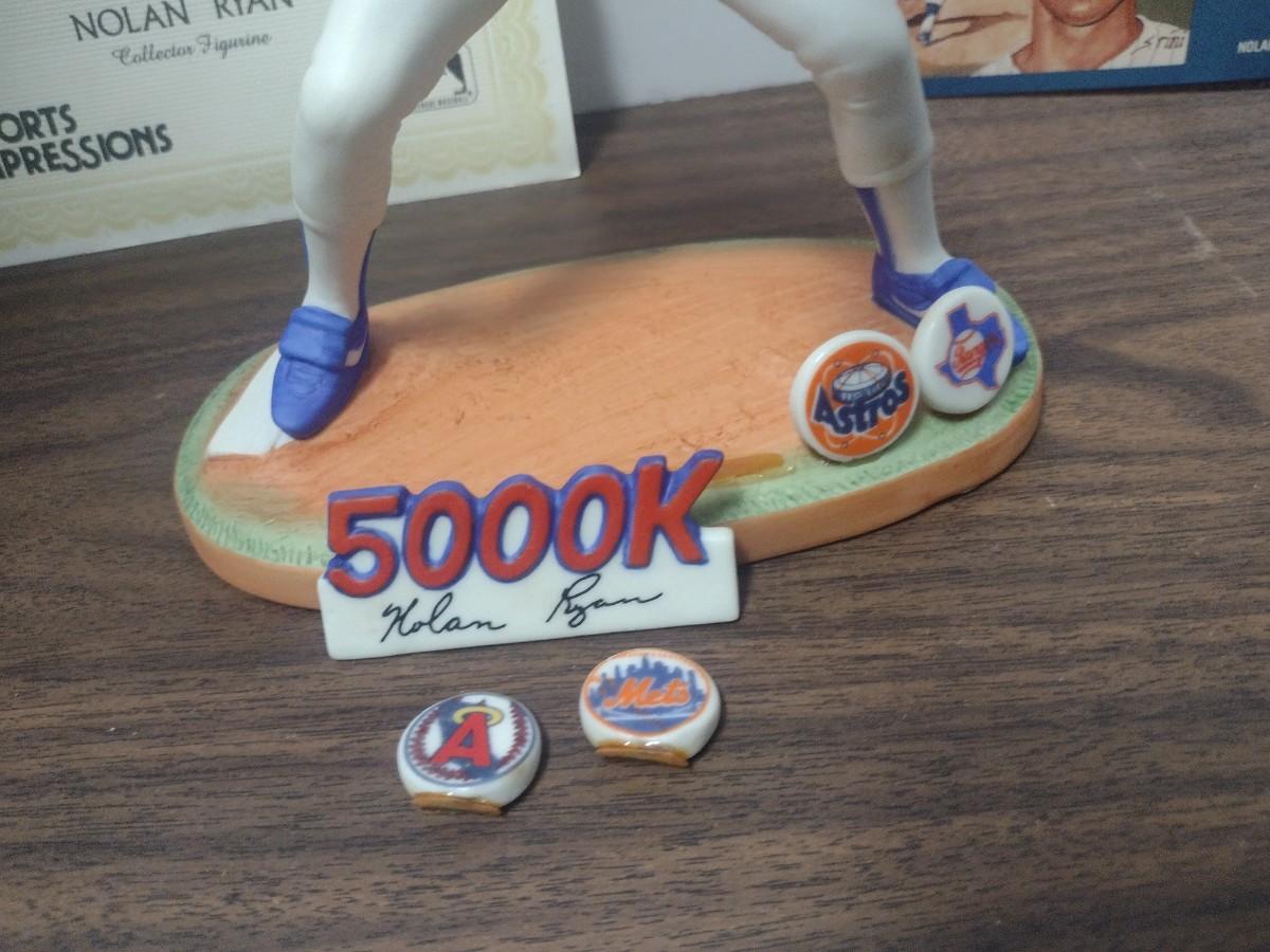 Sports Impressions Nolan Ryan 5000 Strikeouts Baseball Figurine with Box and COA the plaque and team logo medallions need regluing.