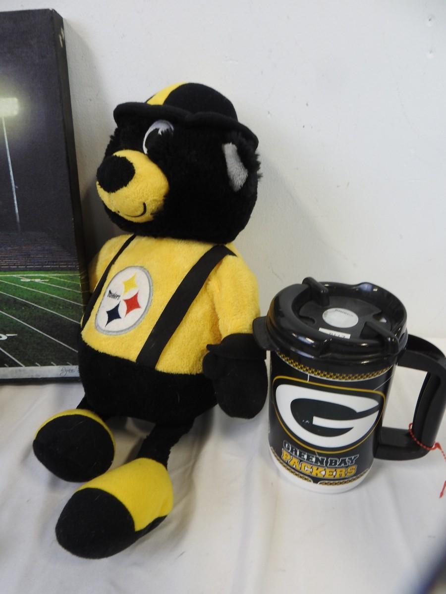 Sports Lot: Steelers Mascot Stuffed Animals, Cowboy Blanket, Plastic