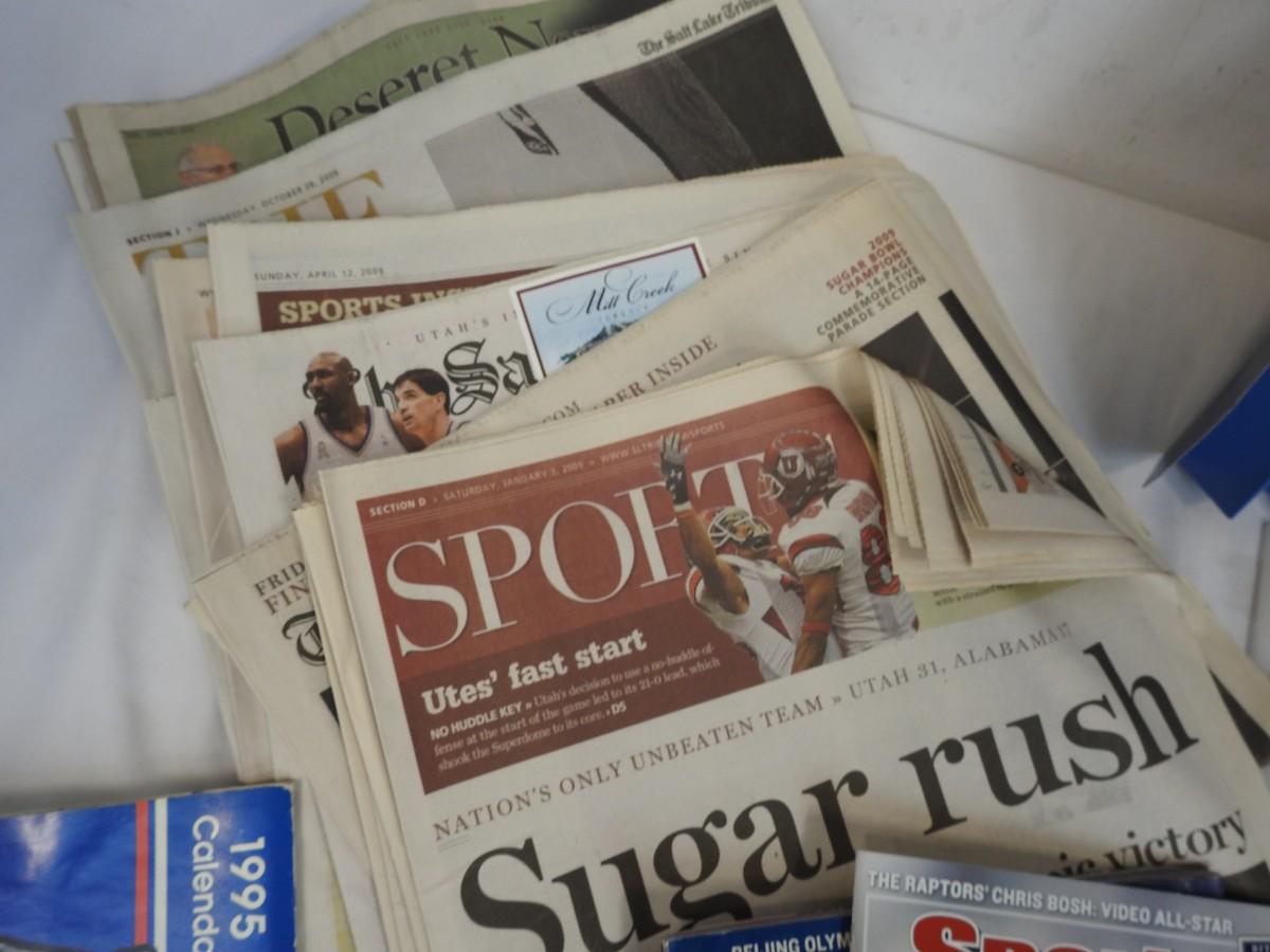 Lot of Sports Magazines and Articles, Utah "Blaze" License Plate, 27 Sports Illustrated Magazines