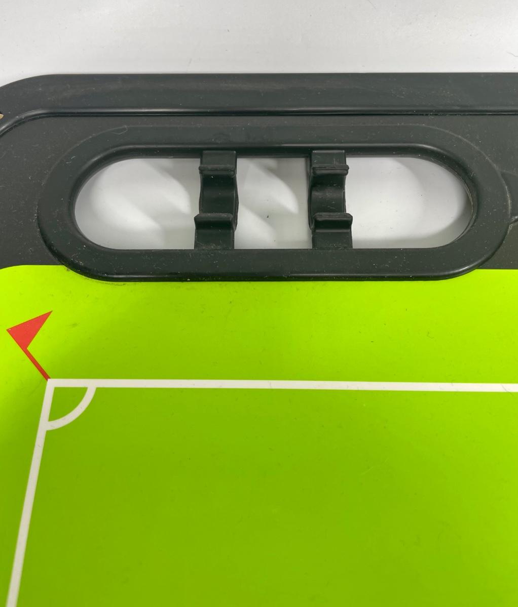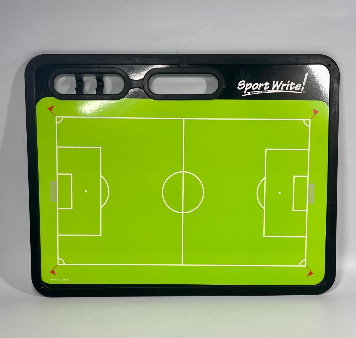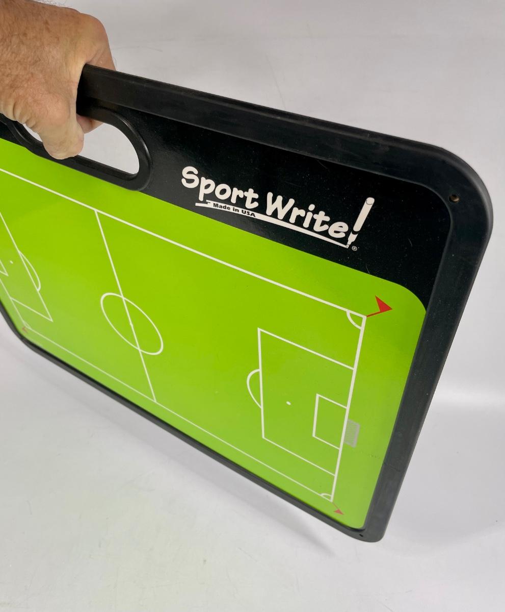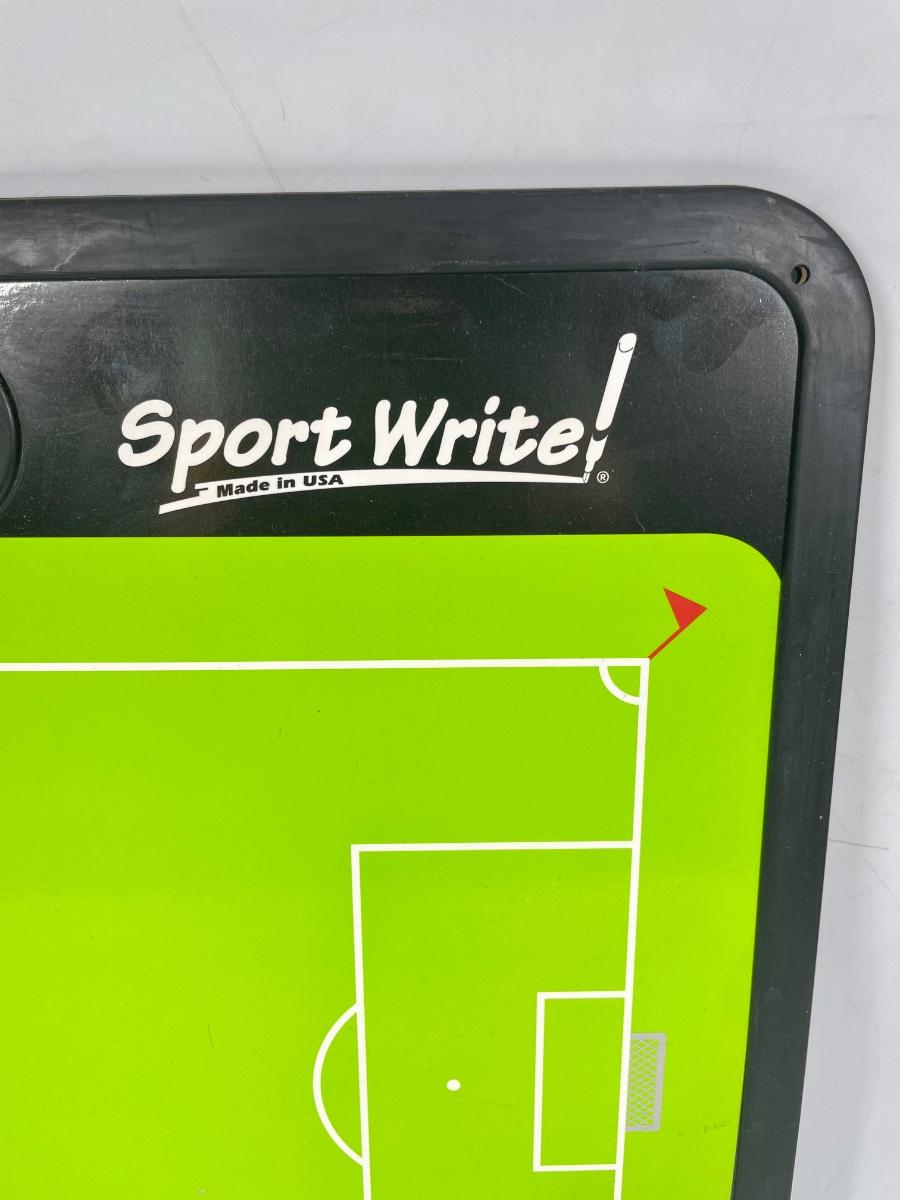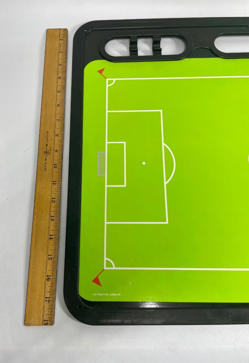 Coach’s dry erase play diagram tool. Shows a soccer field on one side and a plain white board on the other. Near new condition. Does not include dry erase marker. See photos for size.