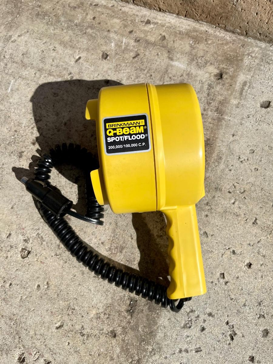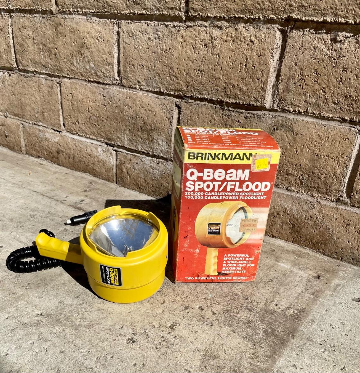 Q Beam handheld spotlight or floodlight, plugs into cigarette lighter. Near new condition..
