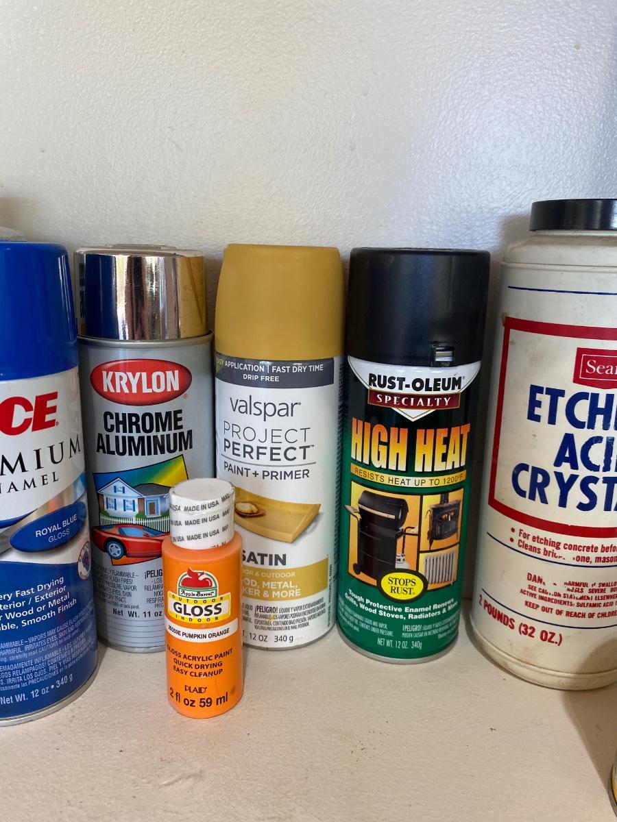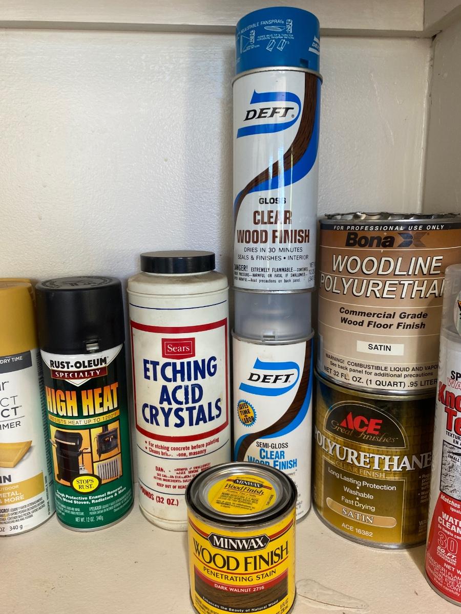 SPRAY PAINT, WOOD STAINS, CONCRETE ETCHING ACID CRYSTAL