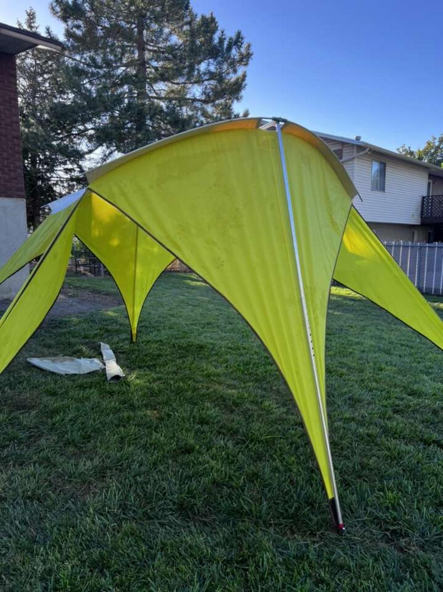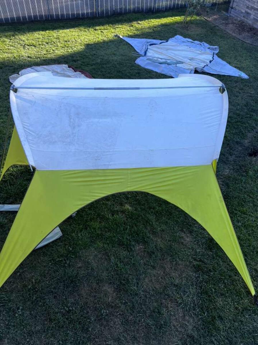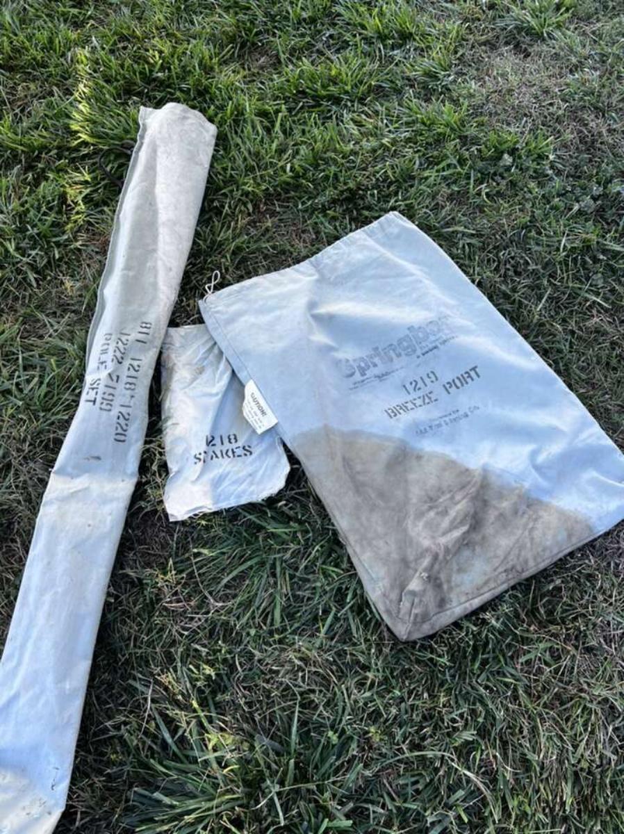 Older Spring bar in excellent condition. Poles are all there I also have the instruction sheet for set up. Incudes pole with bag and bag for the tent, no tent stakes included you will need 6 of them.