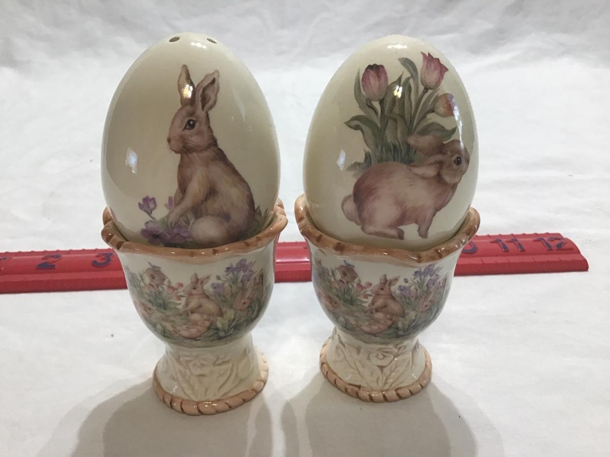 Spring Bunny Egg In Stand Salt pepper Shakers