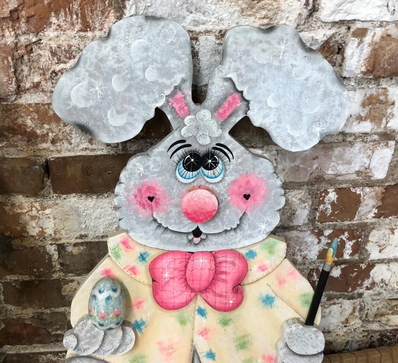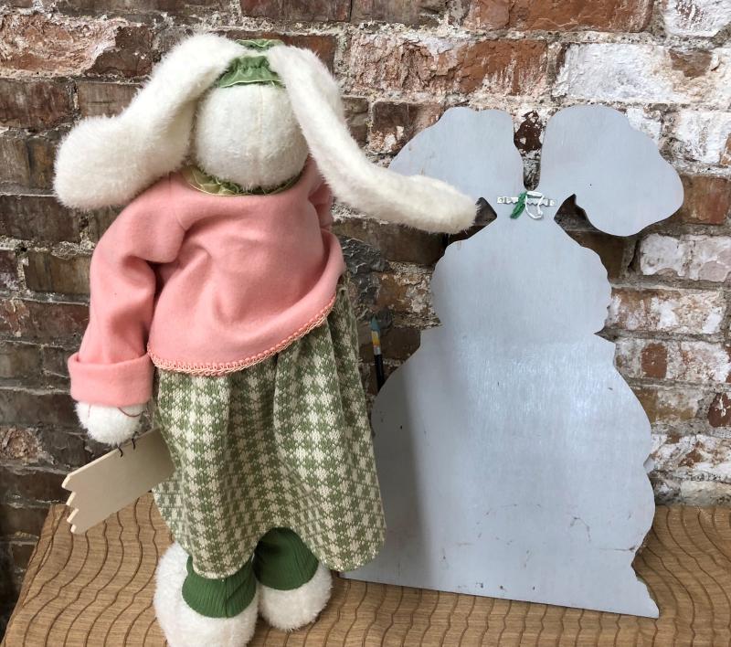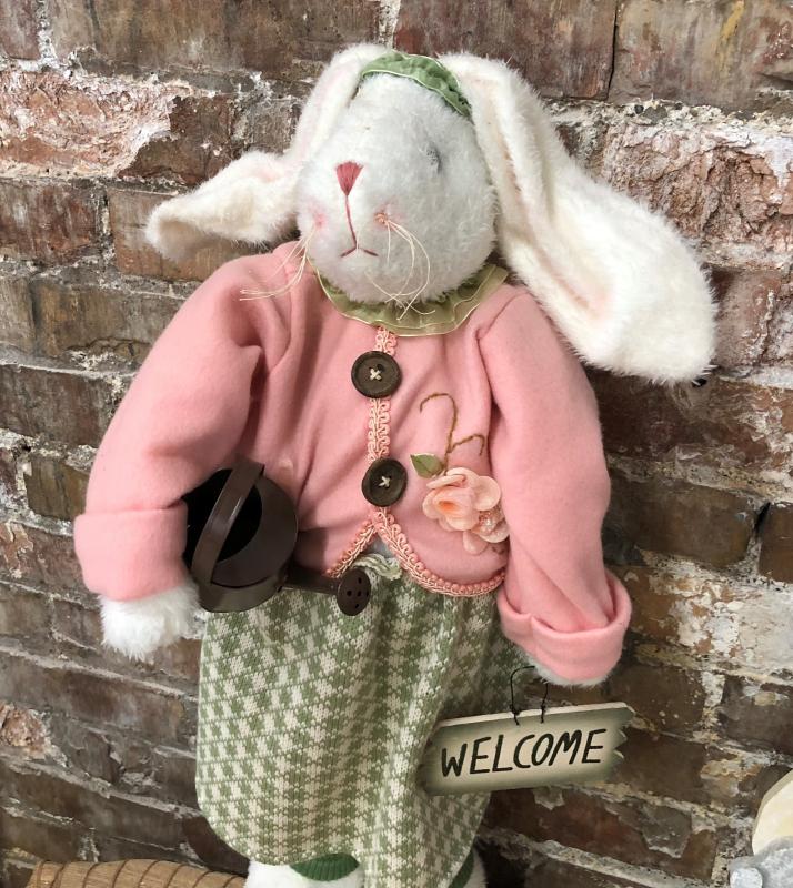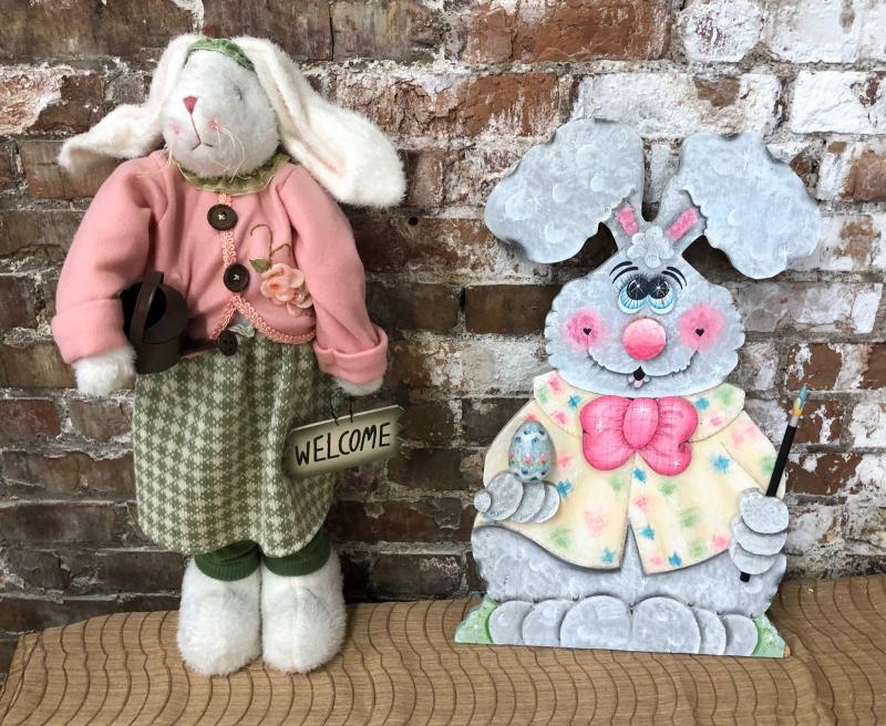 Adorable Easter decor..a 25" tall plush welcome bunny and a free-standing bunny...Excellent condition...