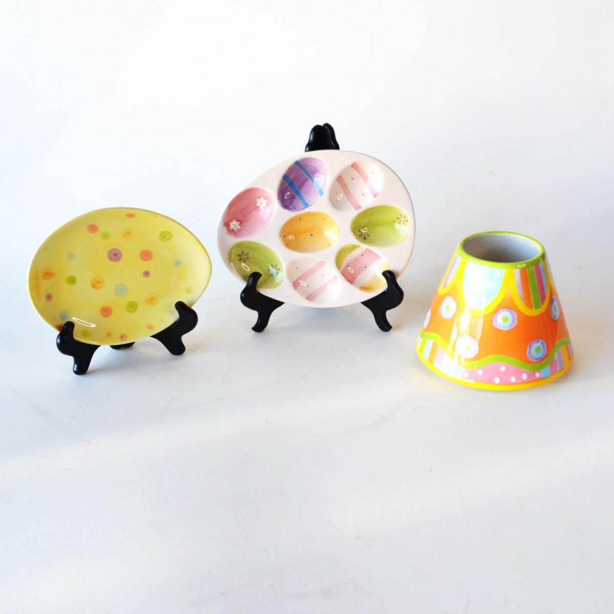Spring / Easter Decor Lot of 3 - Colored Easter Egg Plate, Candy Dish and Jar Candle Shade