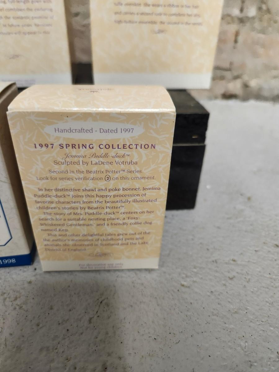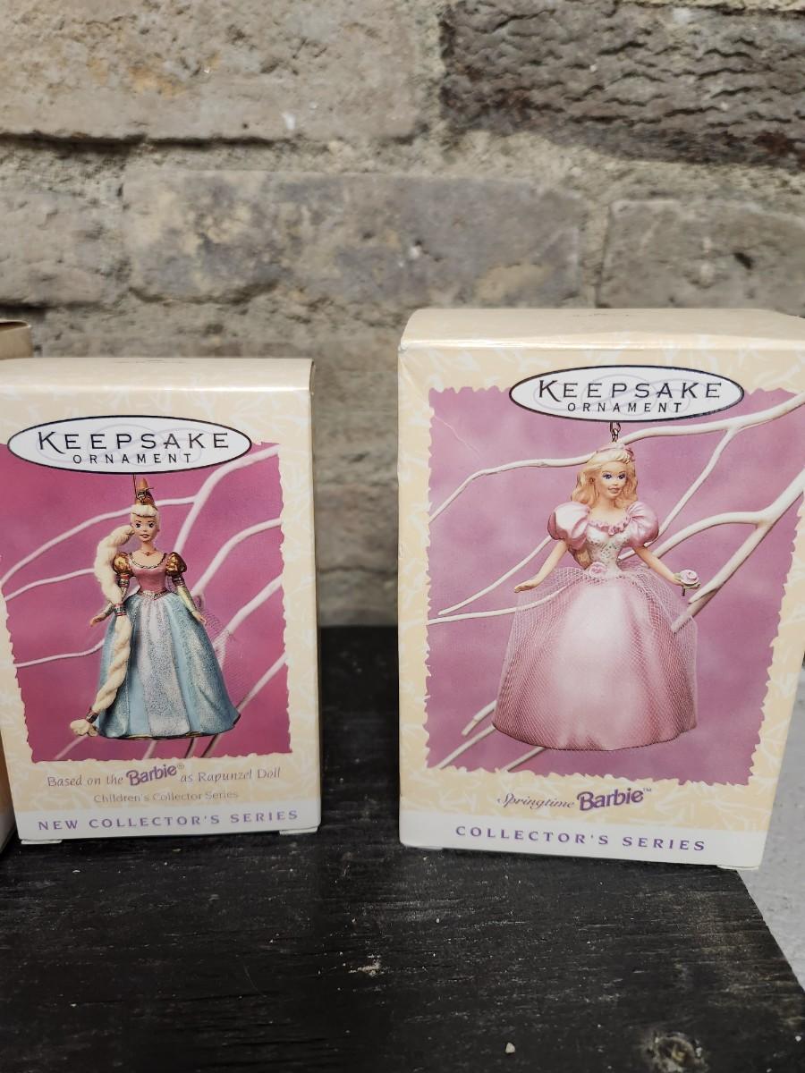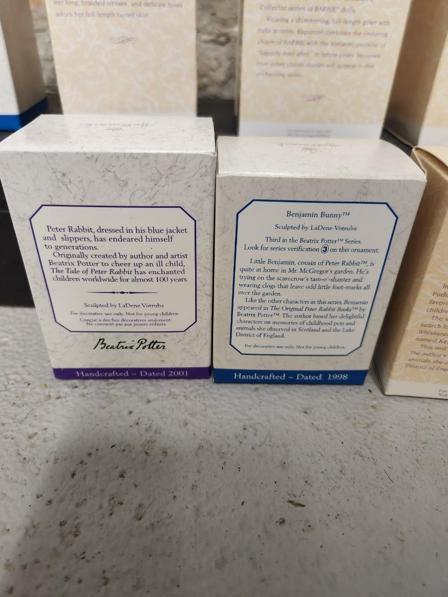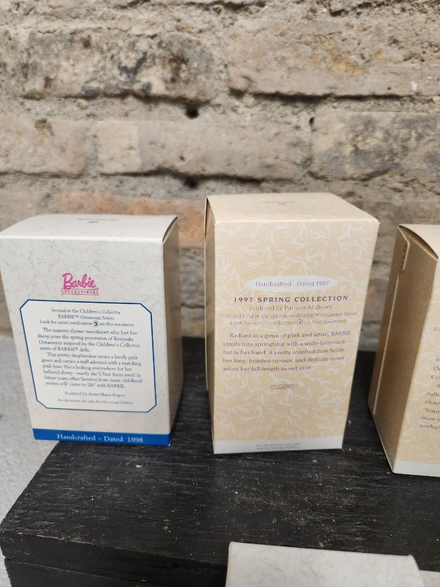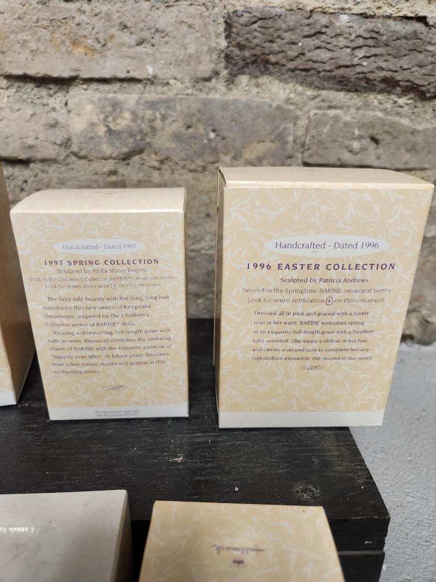 7 NIB Hallmark spring ornaments. Never been opened. Barbie and Peter Rabbit lot