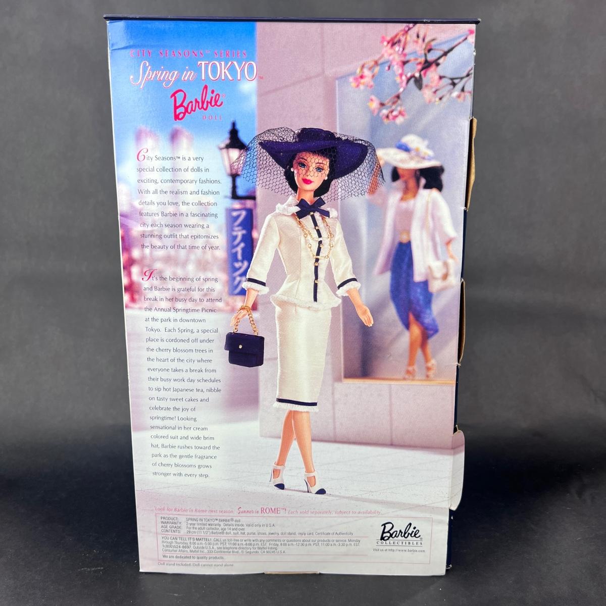 Released in Spring of 1999, this Spring in Tokyo Barbie was part of the City Seasons Collector Edition Series. Produced in 1998 by Mattel. This doll has not been out of its box. **|** Please see photos for details and condition. ::: Shipping is available on this lot. If you require shipping you must let us know at the close of the auction. We will coordinate with you after the item has been won. Shipping fees will include insurance up to or exceeding the value of all items being mailed. If you have any questions regarding this lot please contact the auctioneer either via this website, by direct email or by phone. PICK UP TIMES and other important information can be found in the TERMS and DESCRIPTION of the auction. Please take a look for pertinent information. Thanks!