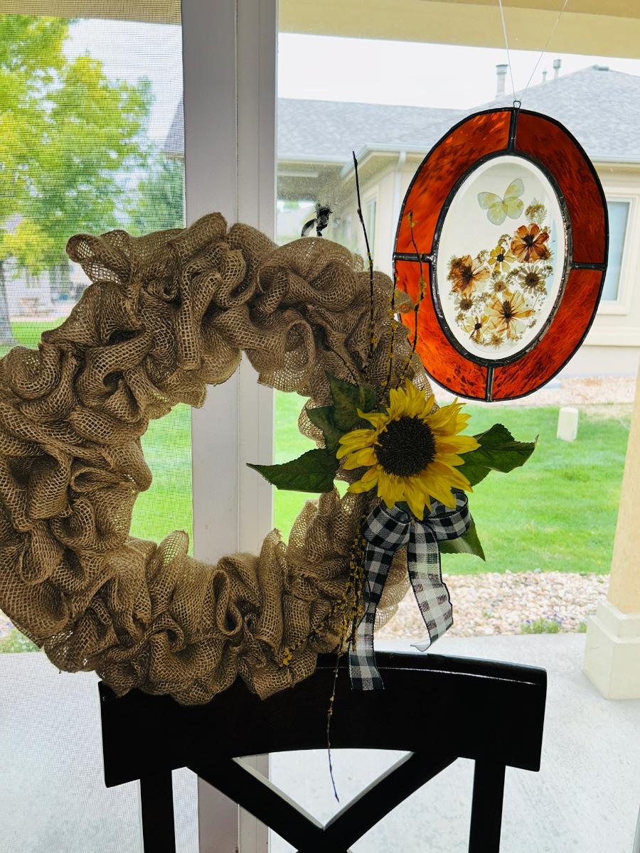 SPRING TIME WREATH AND STAINED GLASS WINDOW DECOR