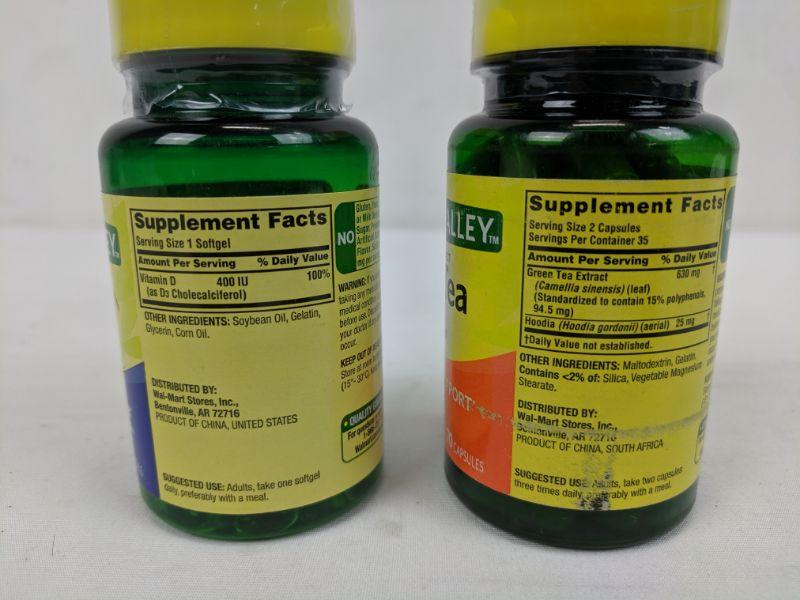 Spring Valley Pills: D3 Supplements 400 IU Softgels & Green Tea 315 MG - New