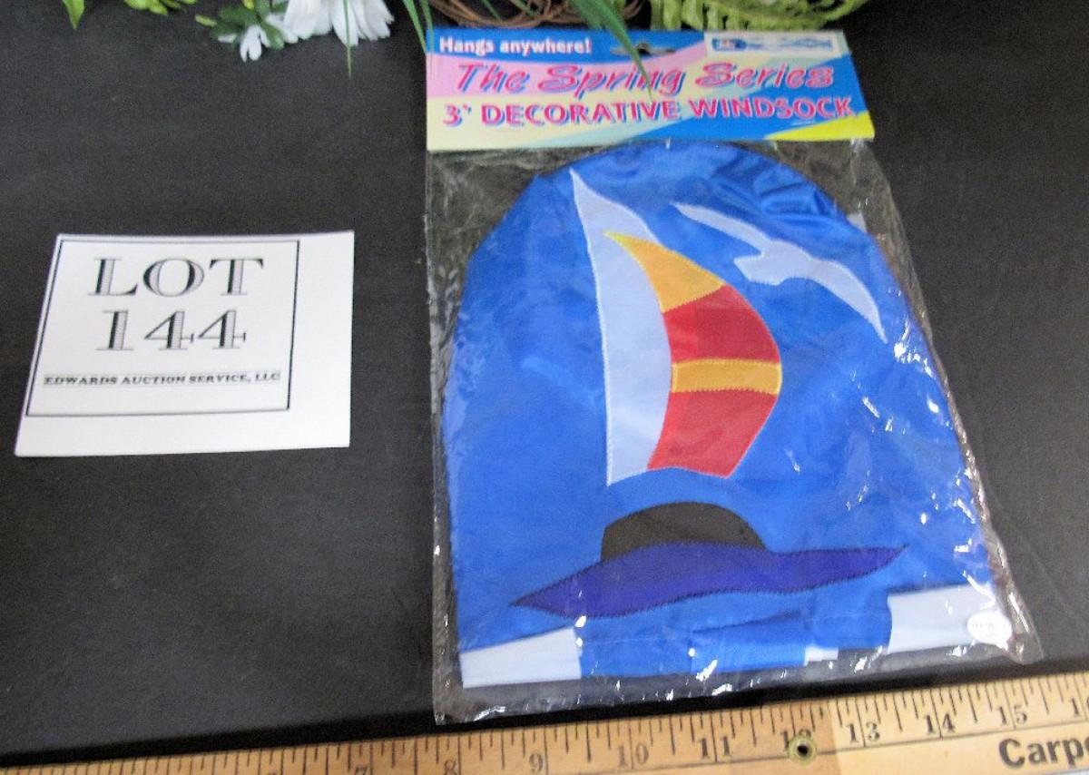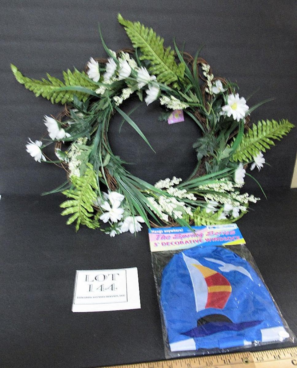Wind sock still in original package, wreath still has tag on it.