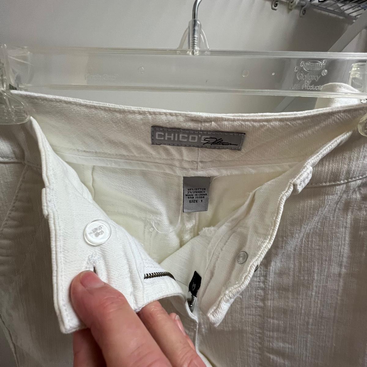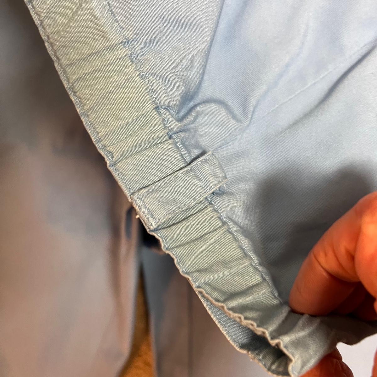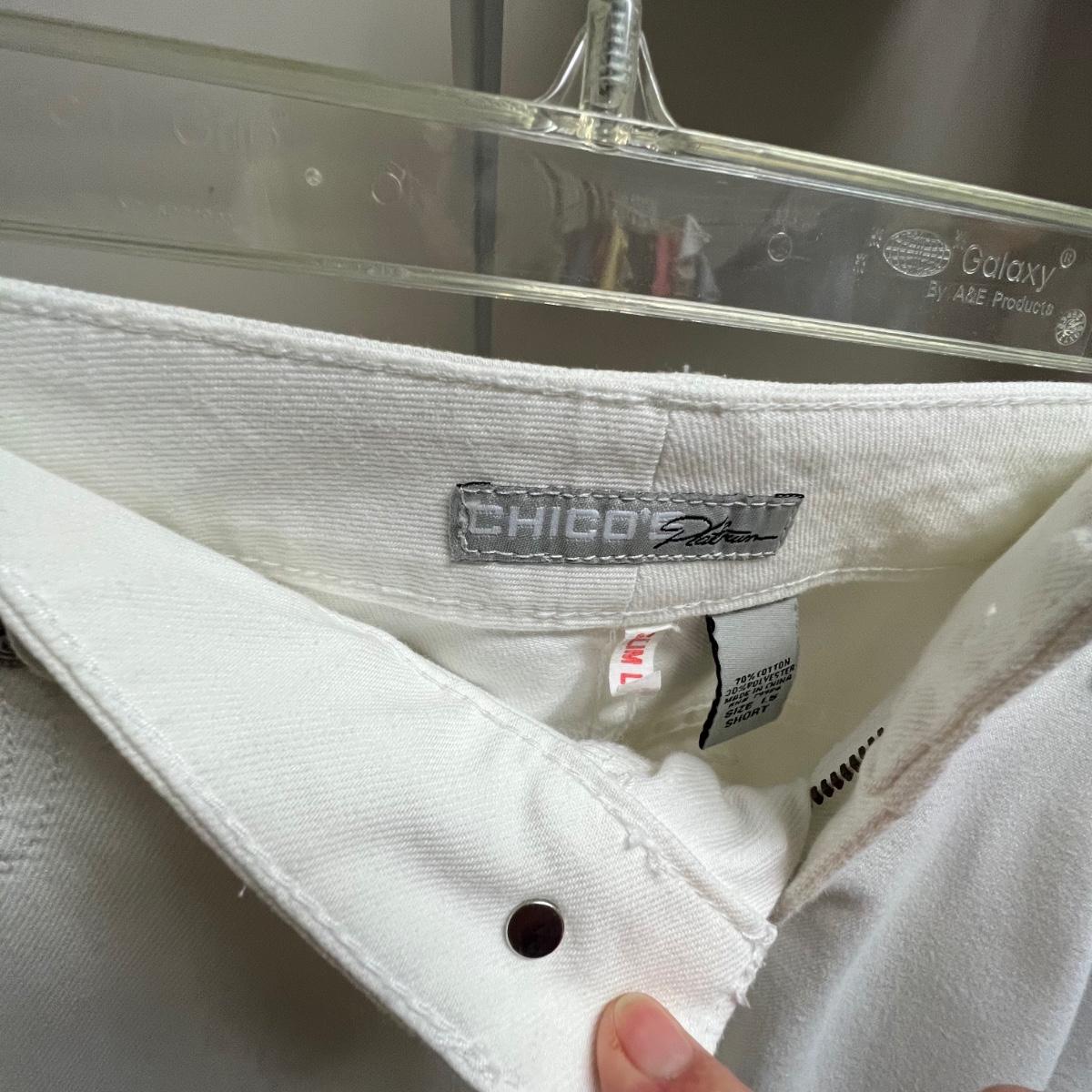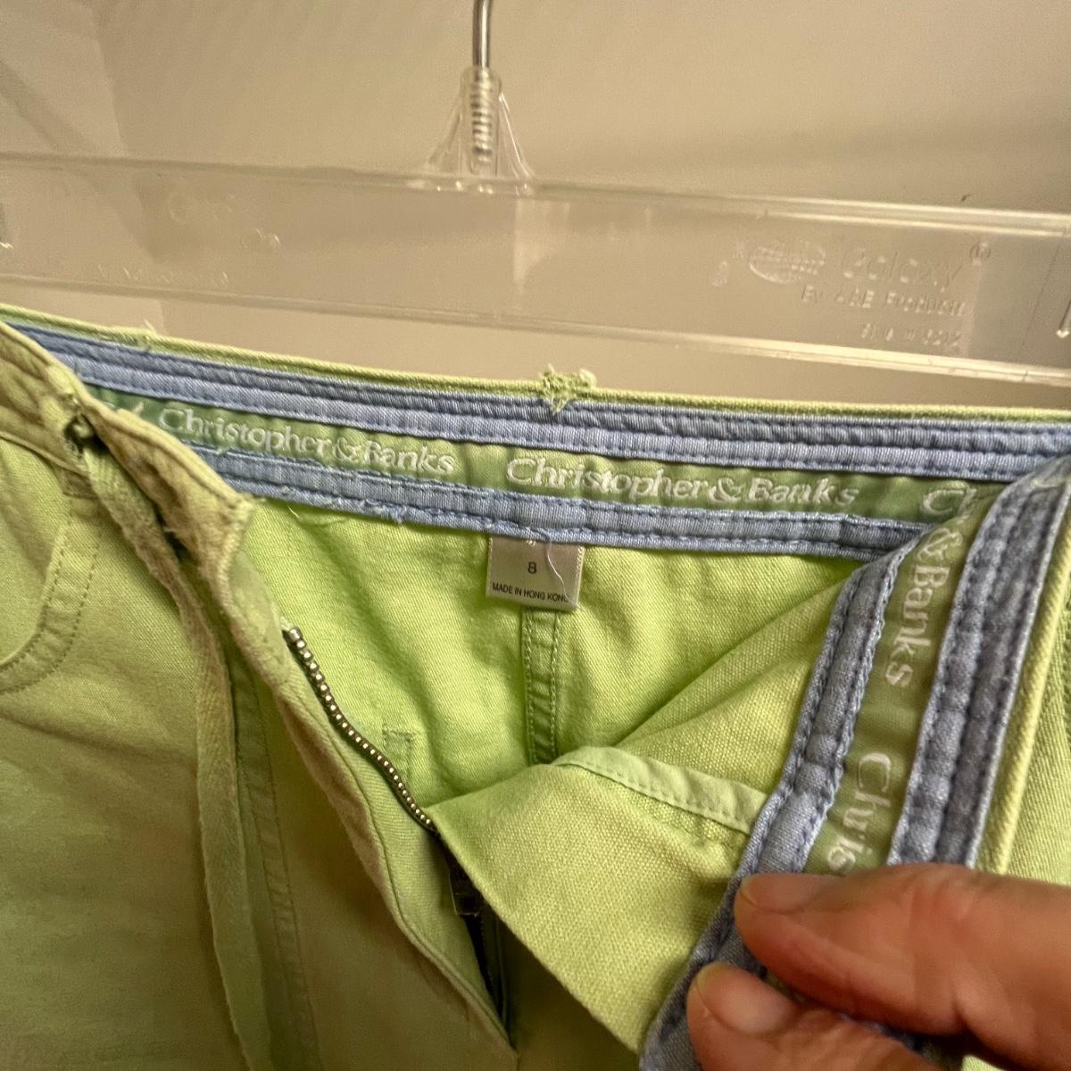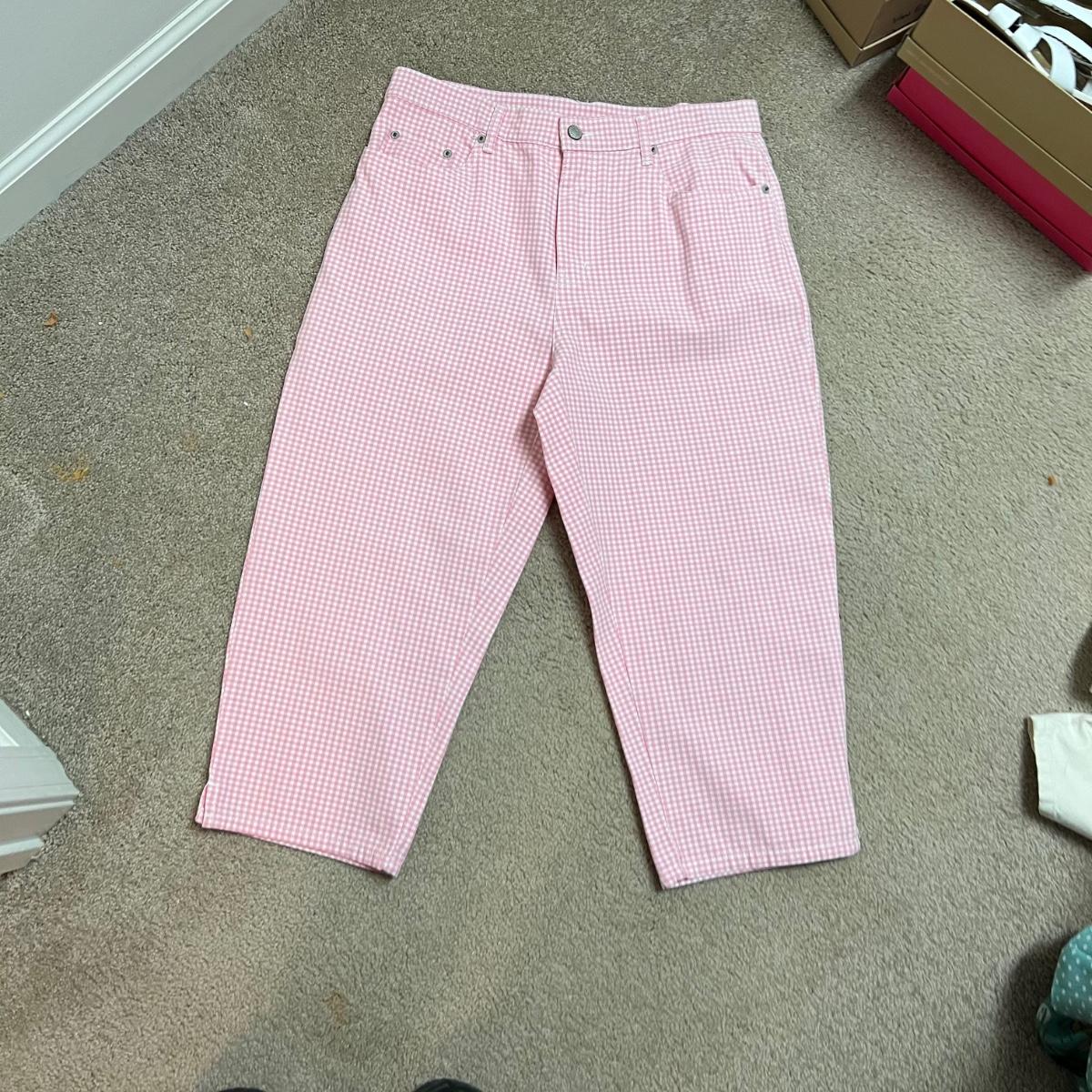A nice assortment of lightweight garments that includes a skirt, nine pairs of pants and six tops. See images for brand names and sizes. Note one pair of white pants has a small stain and the blue pants have some fading on the waistline.