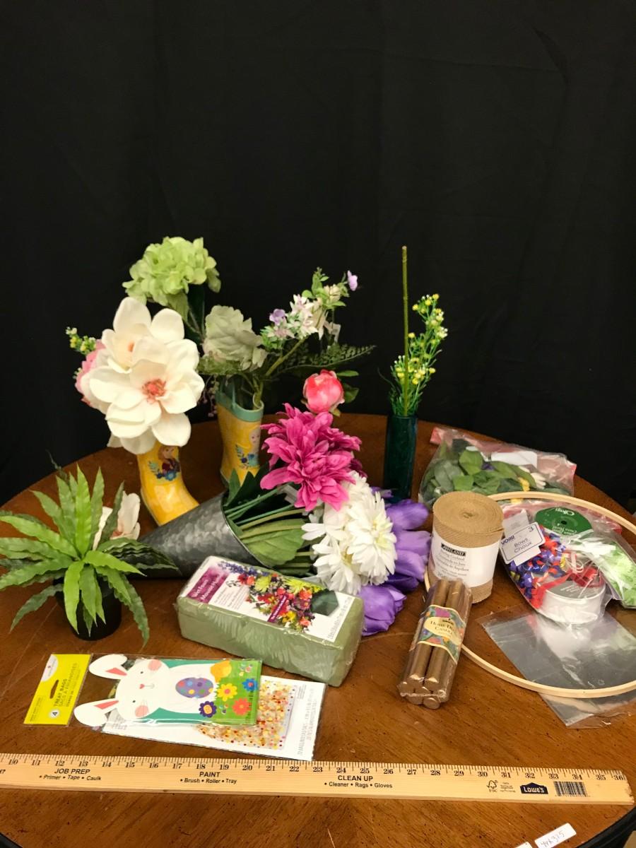 Spring decor: springtime decor, artificial florals, floral holders, crafting materials, easter decor, candles;