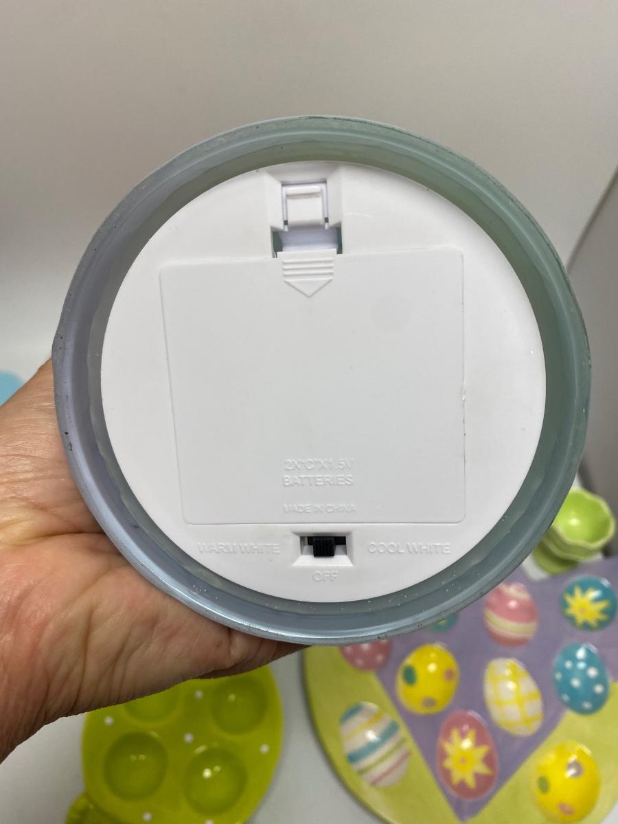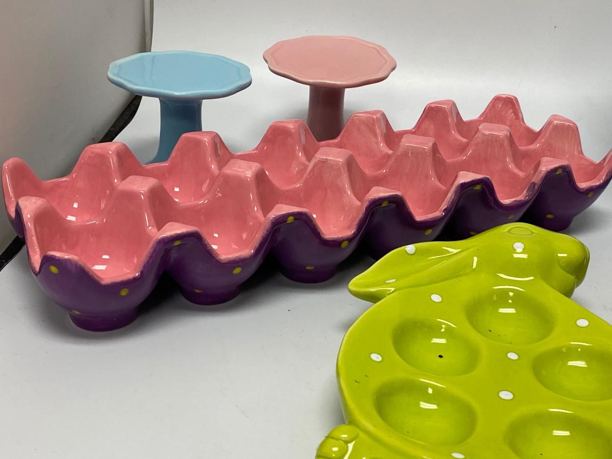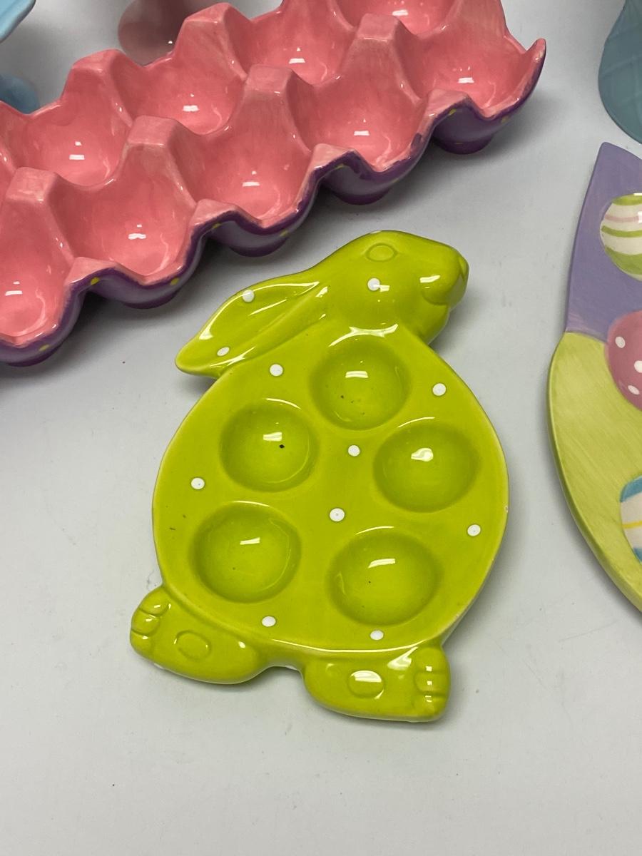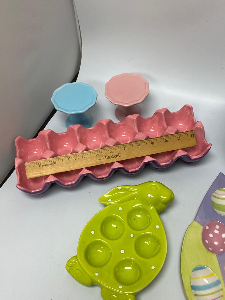Springtime Easter Ceramics Egg Holders Decor. Good condition. The urn lamp lights up and works. Everything is in good used condition, light signs of wear.