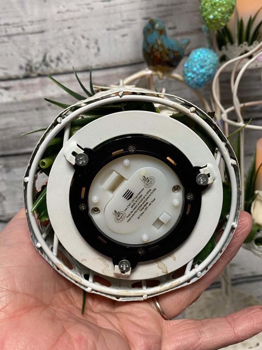 Springtime Easter Decorated White Metal Battery Operated Candle Lantern Stand