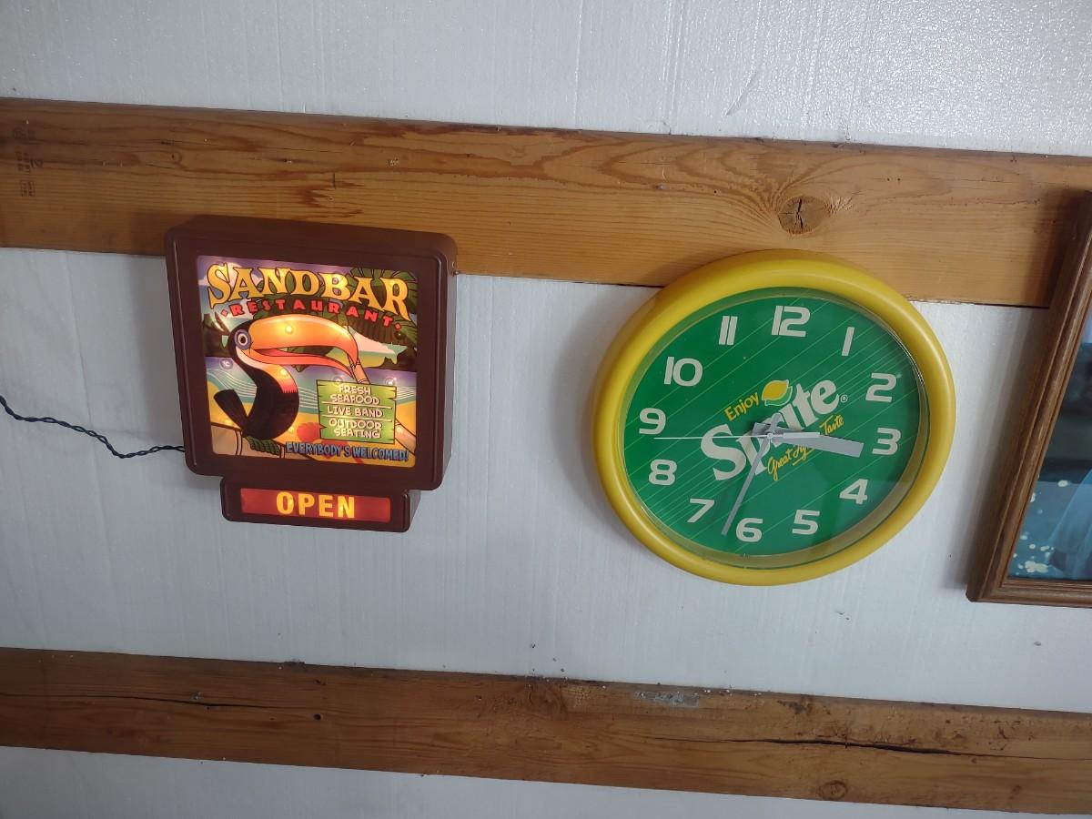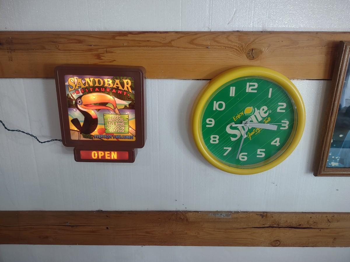 SPRITE CLOCK & LIGHTED SANDBAR RESTAURANT OPEN SIGN