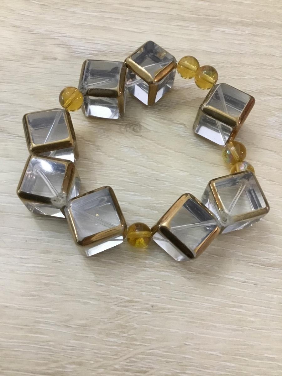 Square clear, glass bead stretch bracelet