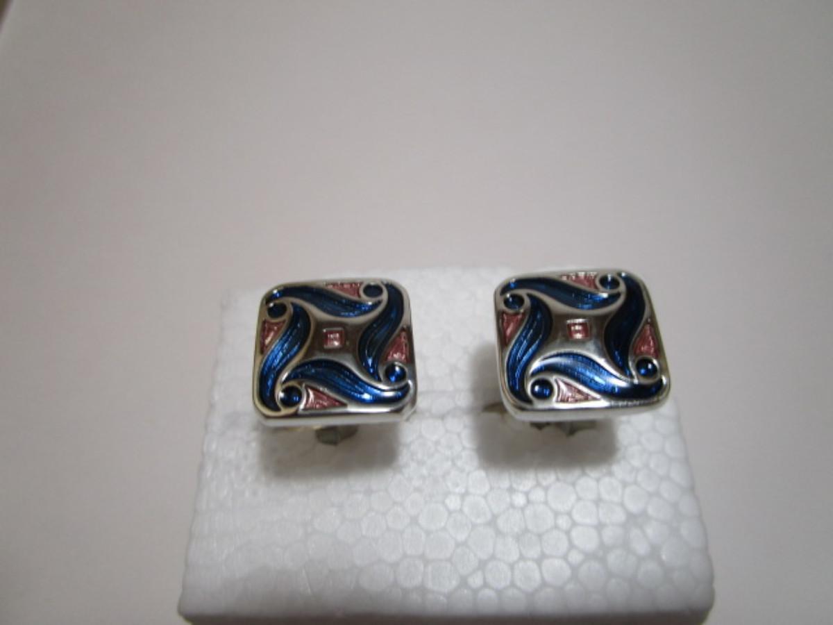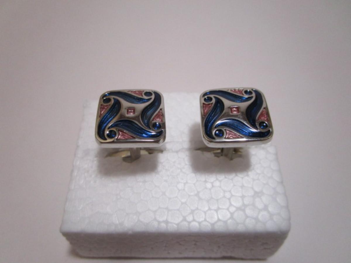 Square cufflinks (5/8"), silver, blue & copper