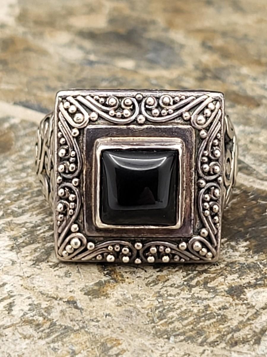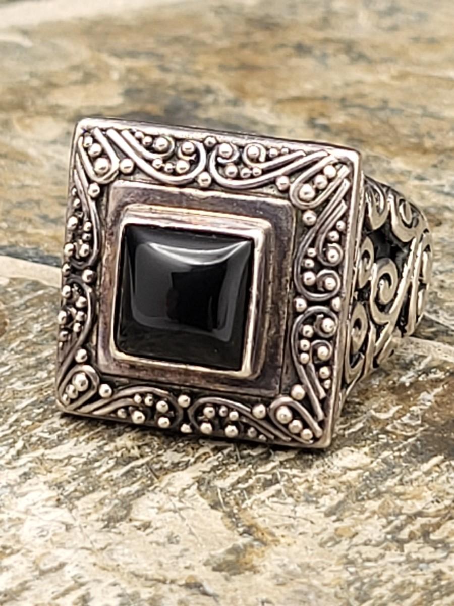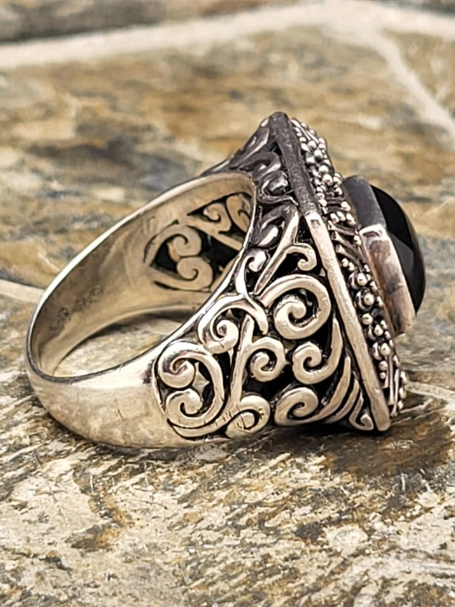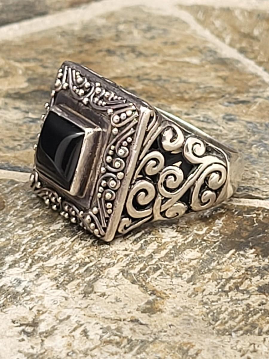 Stamped BJO 925. Scroll & open work. The inside of the ring is also fully finished, making it very comfortable to wear. It is a size 7. Total weight is 10.1 grams.