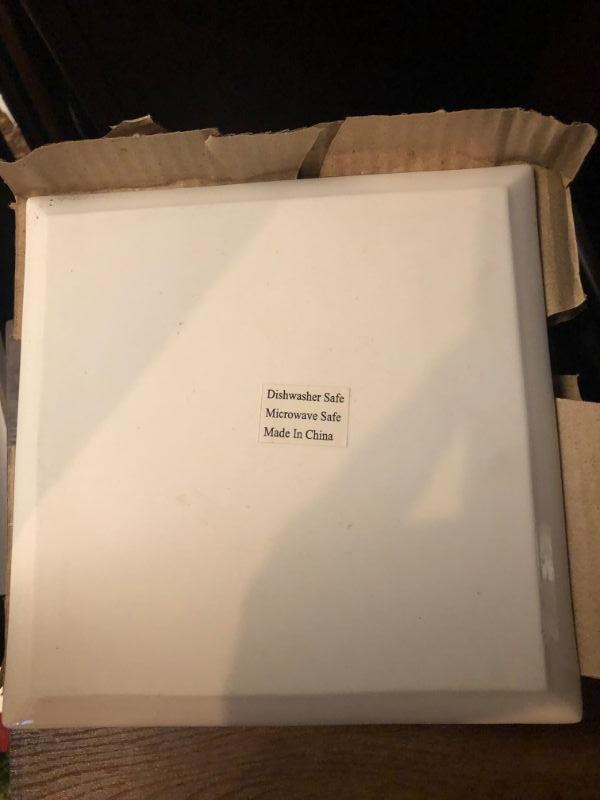WHITE SQUARE PLATE, NEW SET OF TWELVE