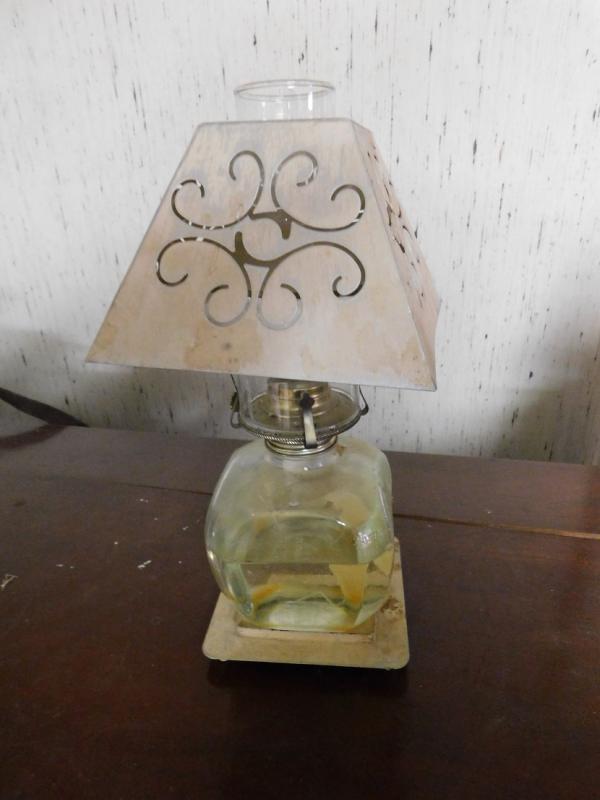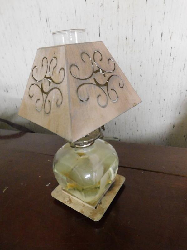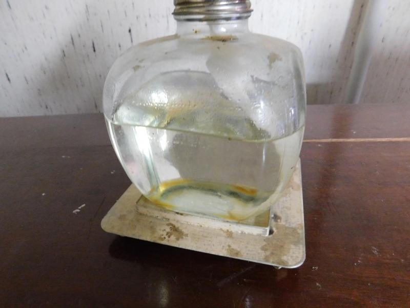 Square Pressed Glass Oil Lamp with Artisan Shade needs cleaning