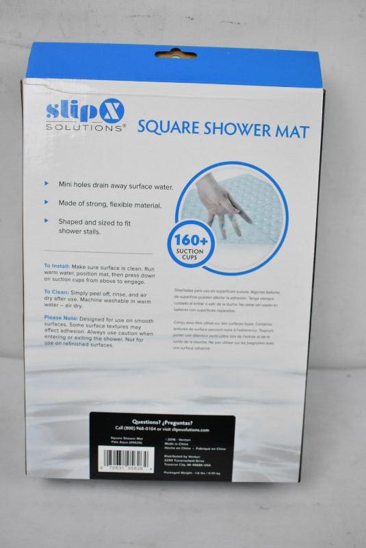 Square Shower Stall Mat, Pale Aqua, 21" x 21" by SlipX Solutions - New