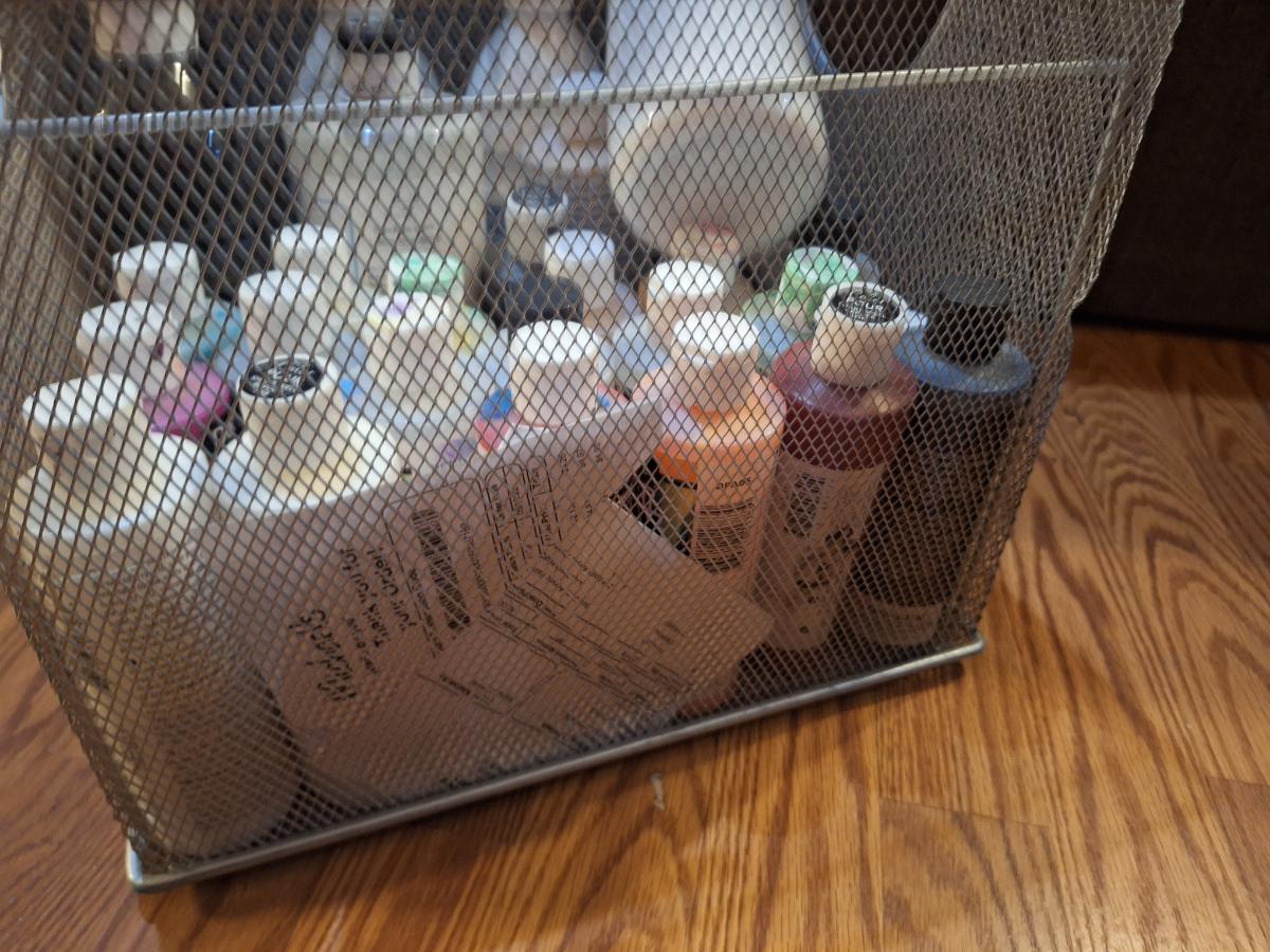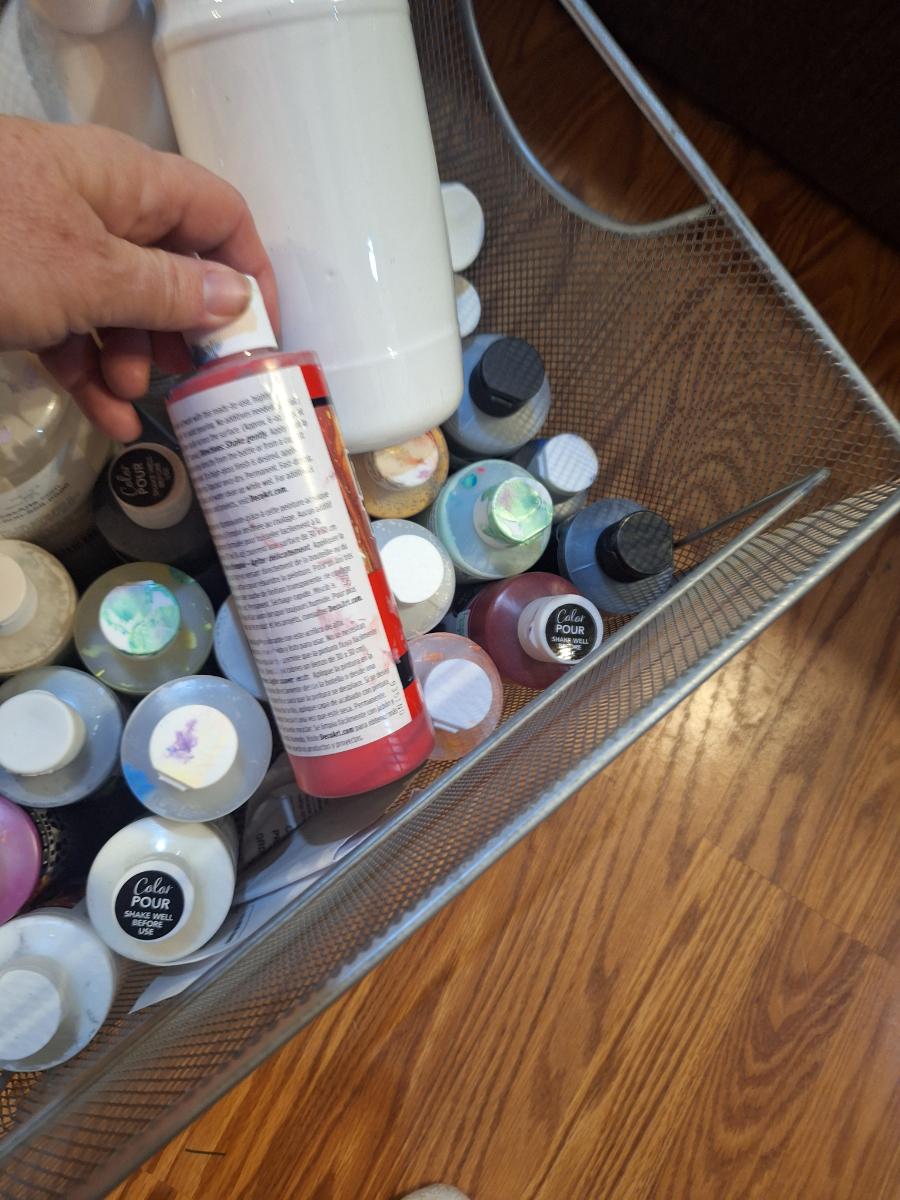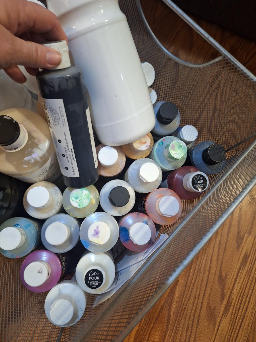 square steel baskety of various paints for crafting