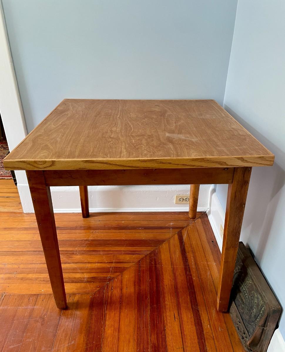 Measures 30.25" tall x 32.75" wide. One leg needs tightening.
