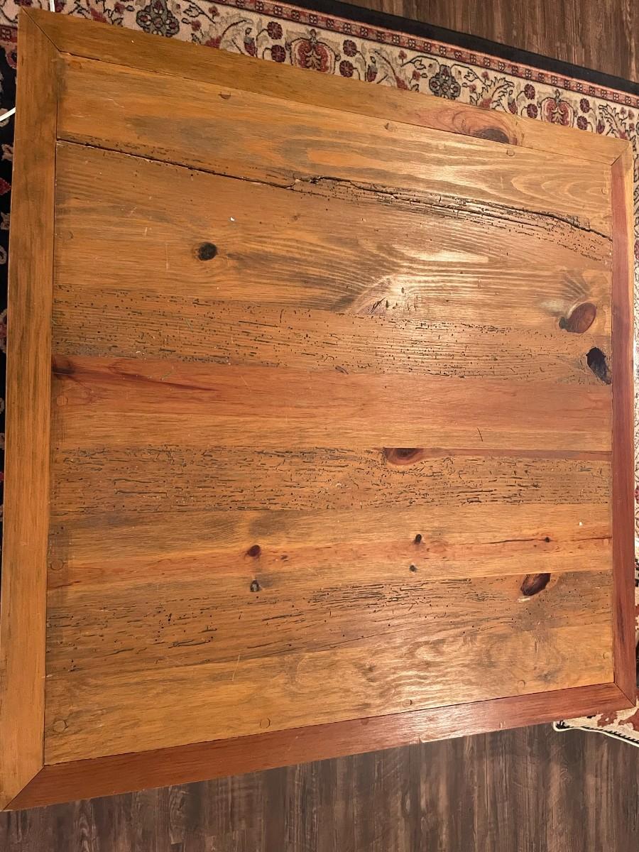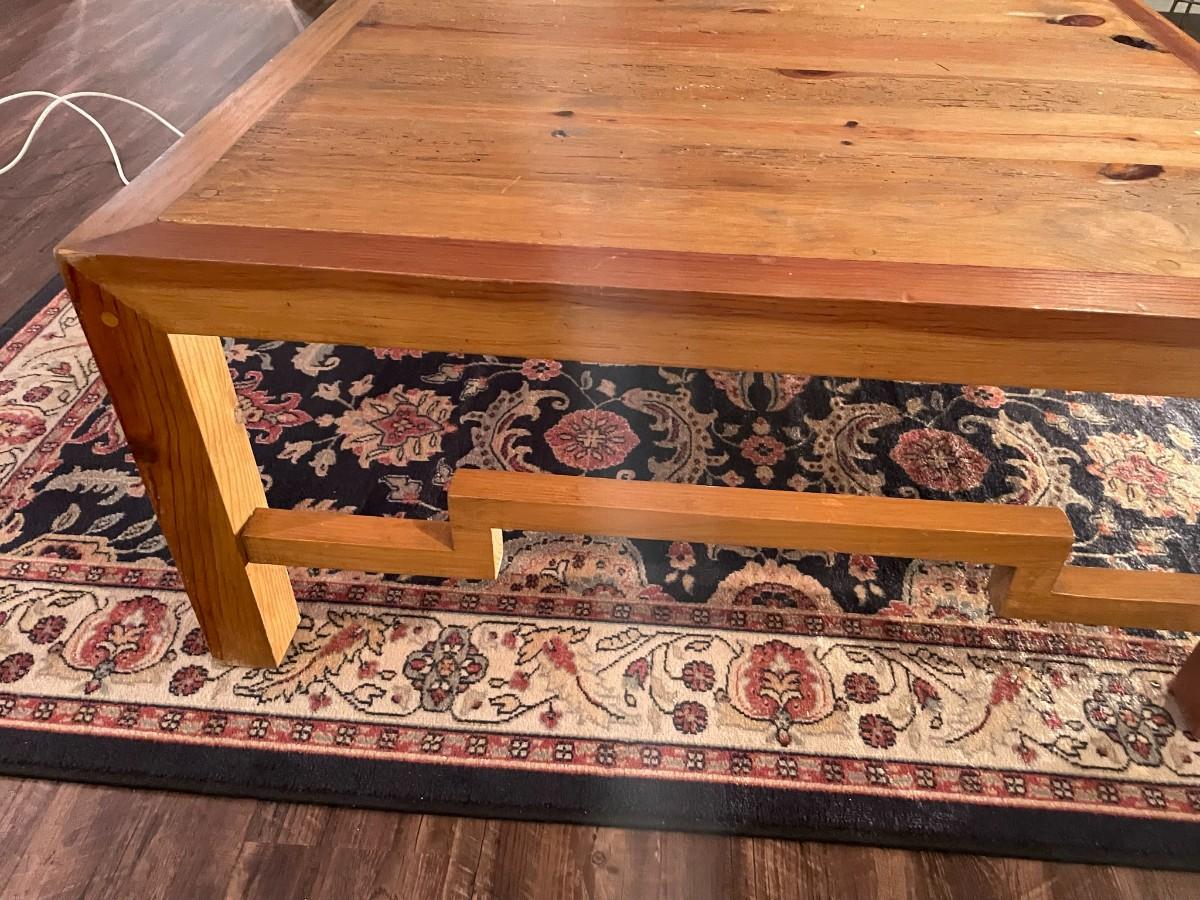 Square Wood Coffee Table. 40"x40". Rug not included.