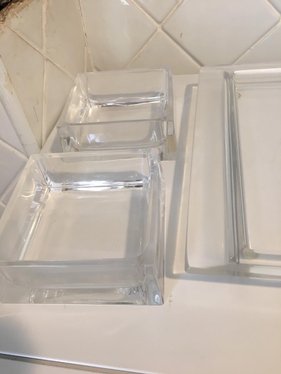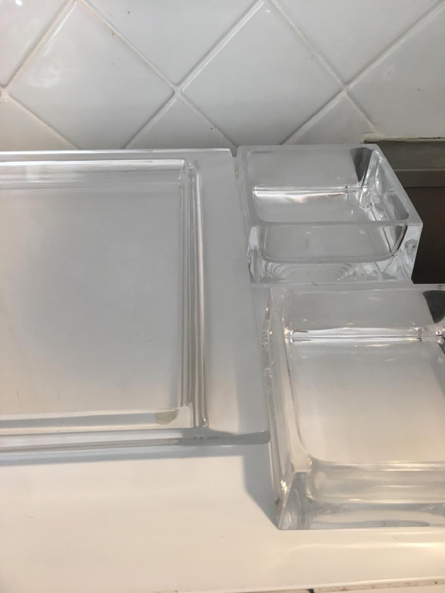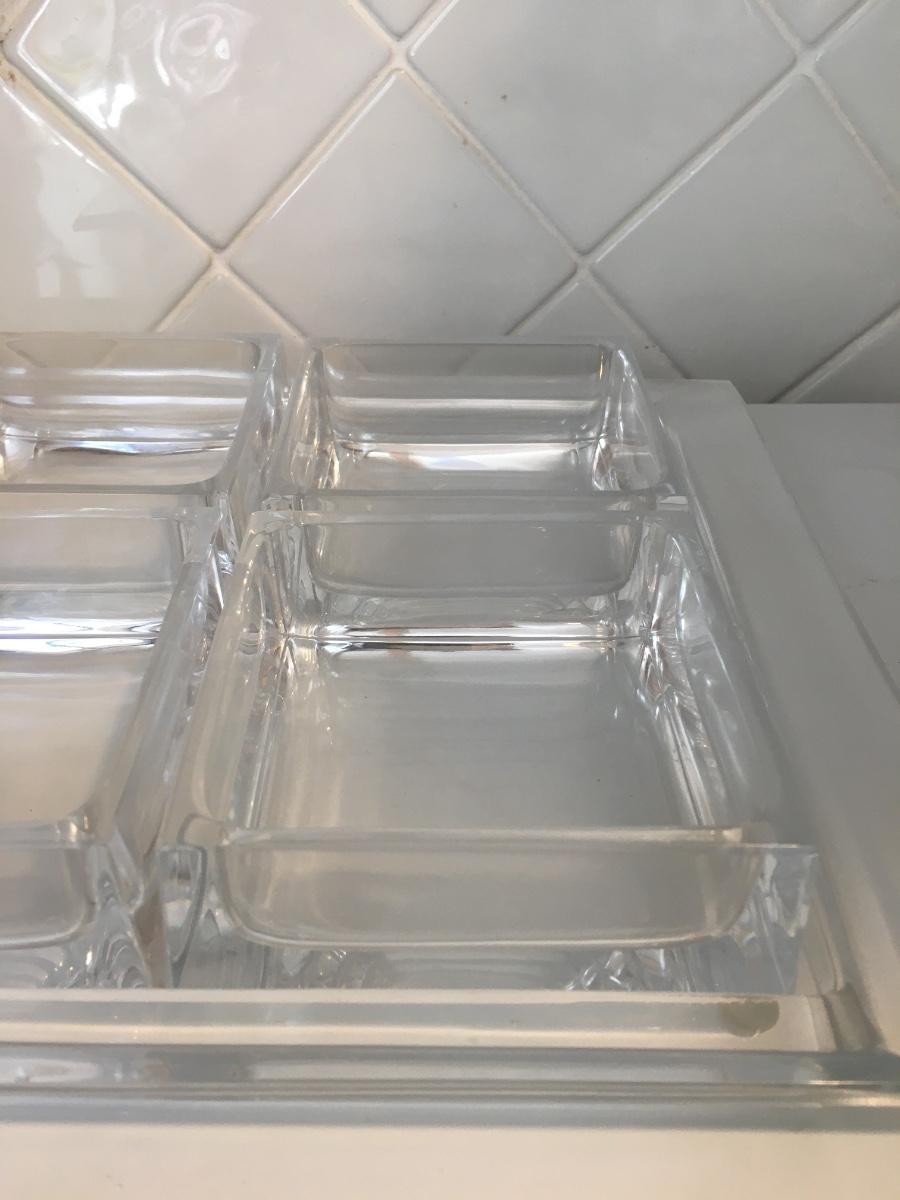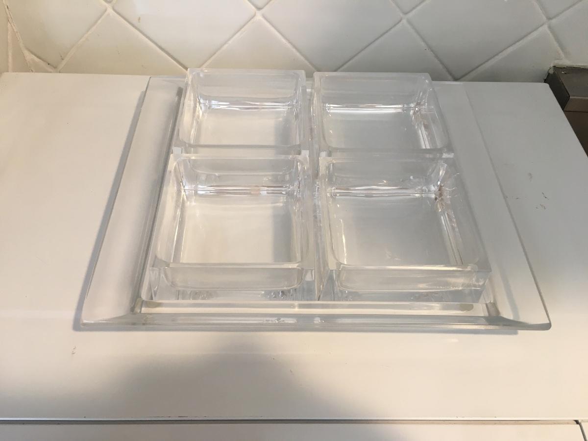 Glass square serving container that comes with 4 smaller removable glass square 'dishes'