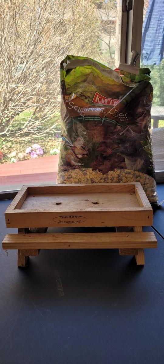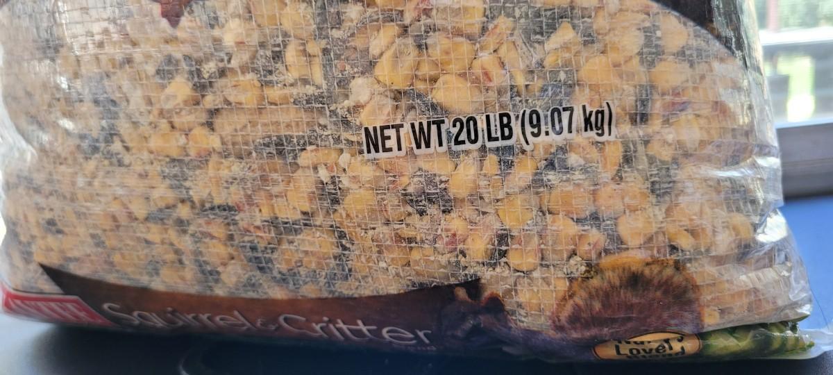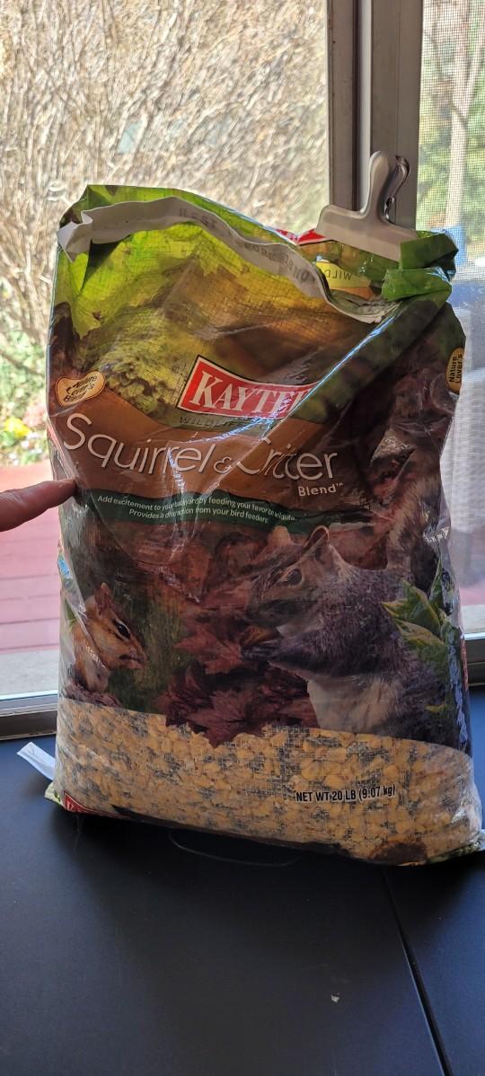 Large 20lb Squirrel Food and Playtime Bench for the furry friends. Please see photo for Level of bag as it is not full.