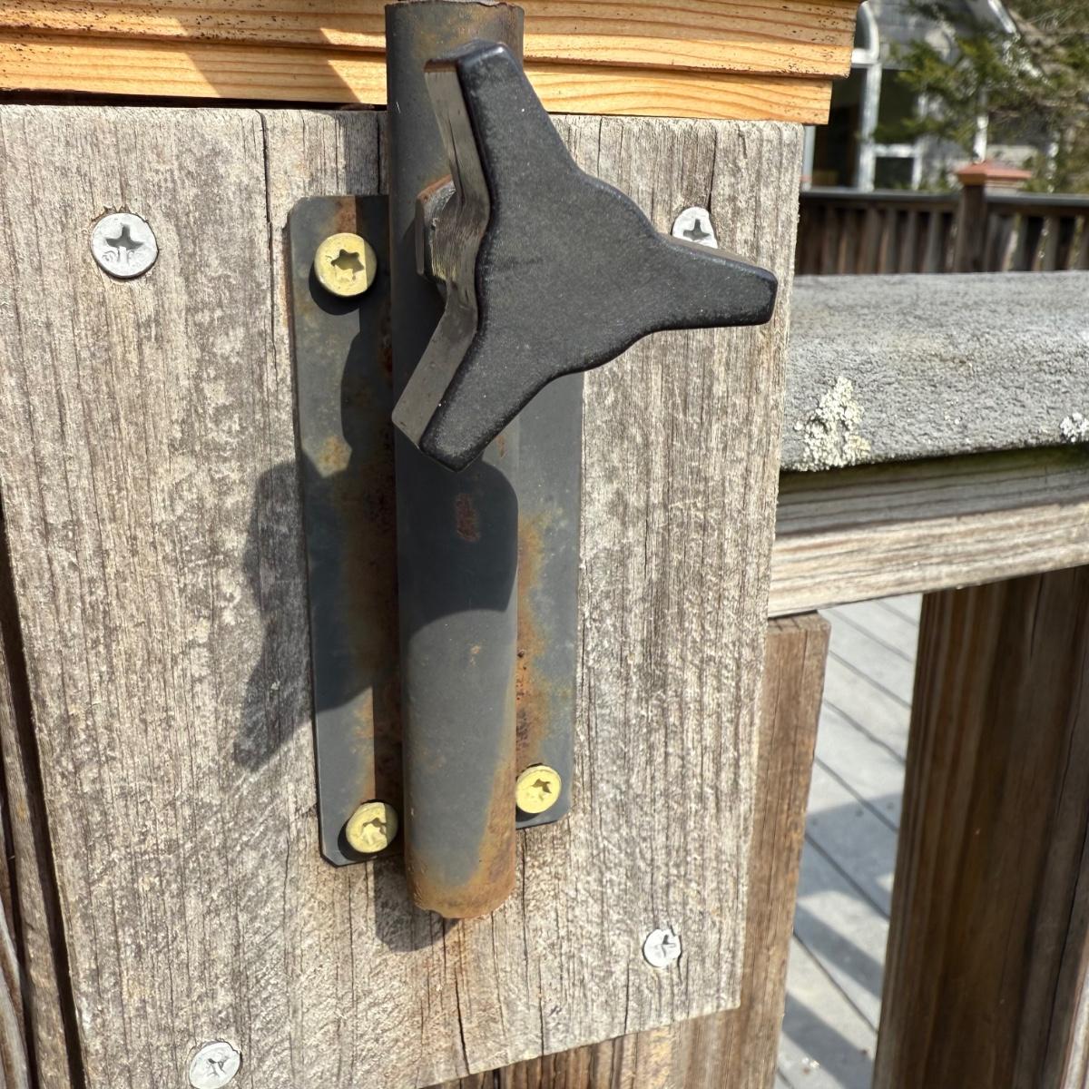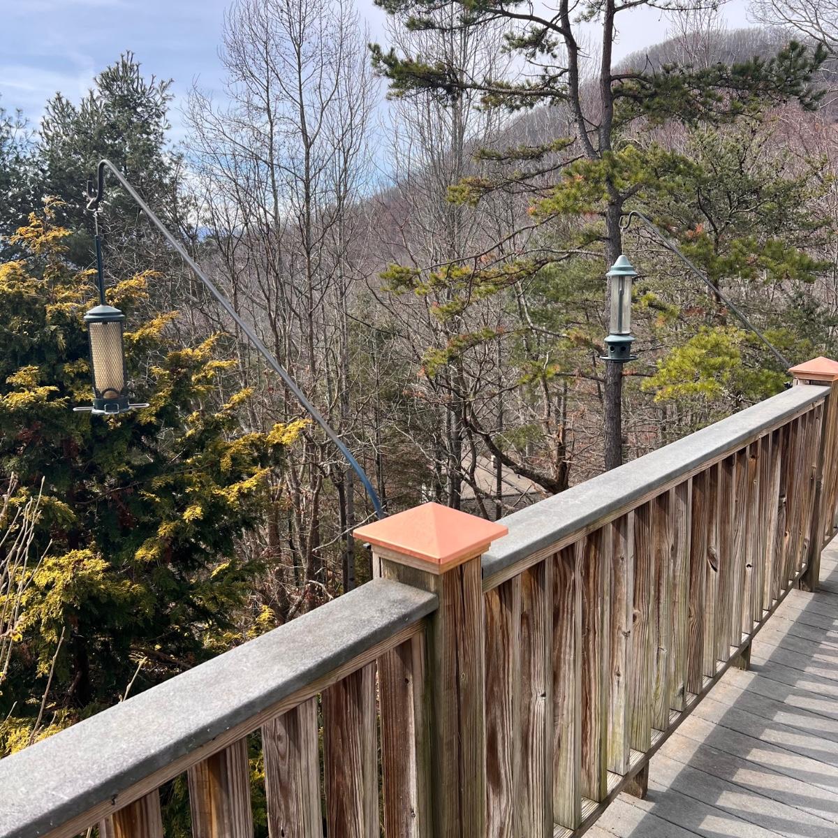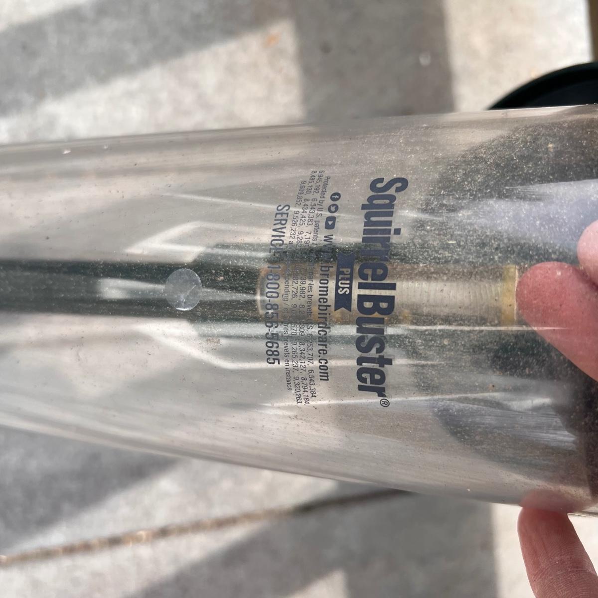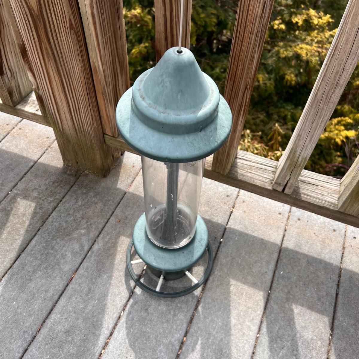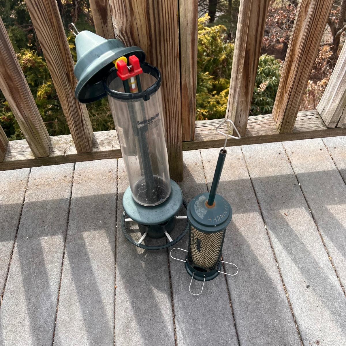 Two squirrel proof bird feeders, larger one measures 7”D x 26”H. Metal deck poles are also included. Winning bidder responsible for taking them down, Torx screws are used, so please bring appropriate tools.
