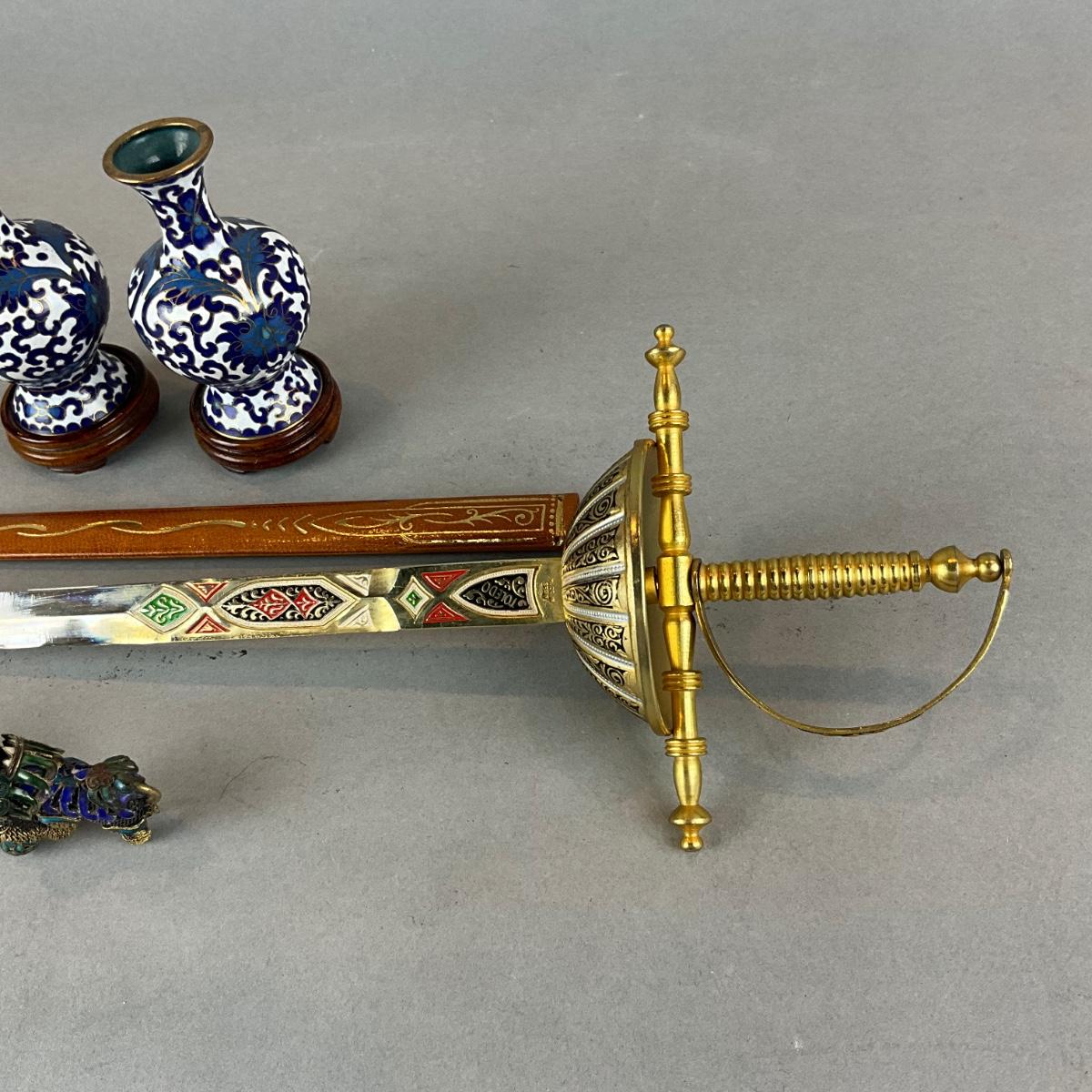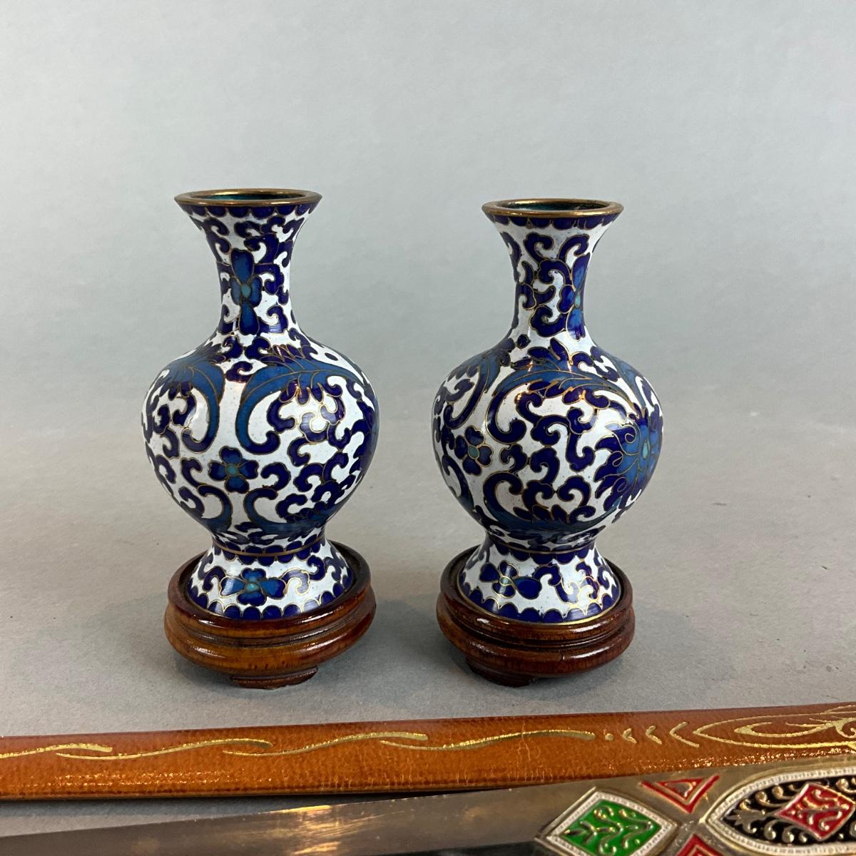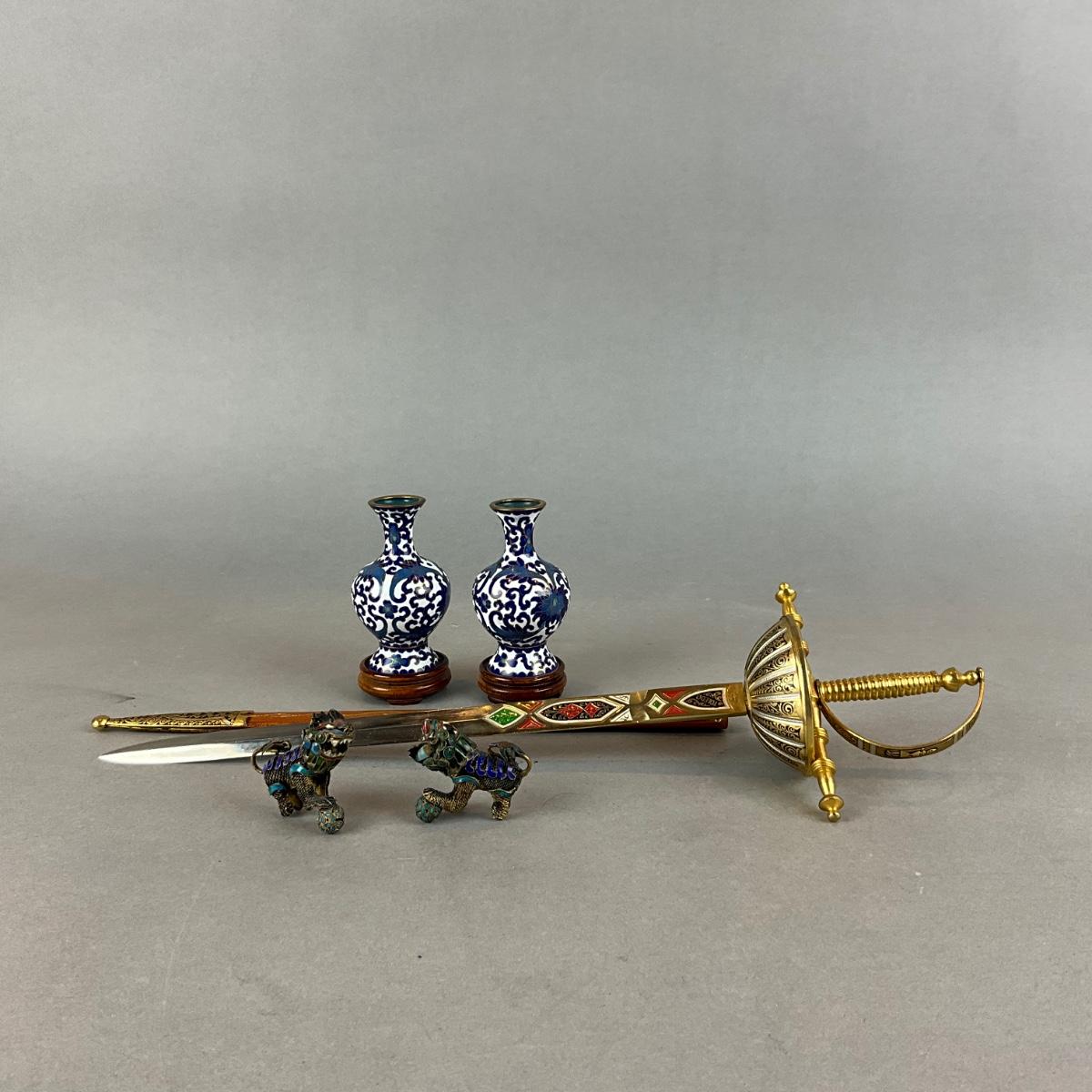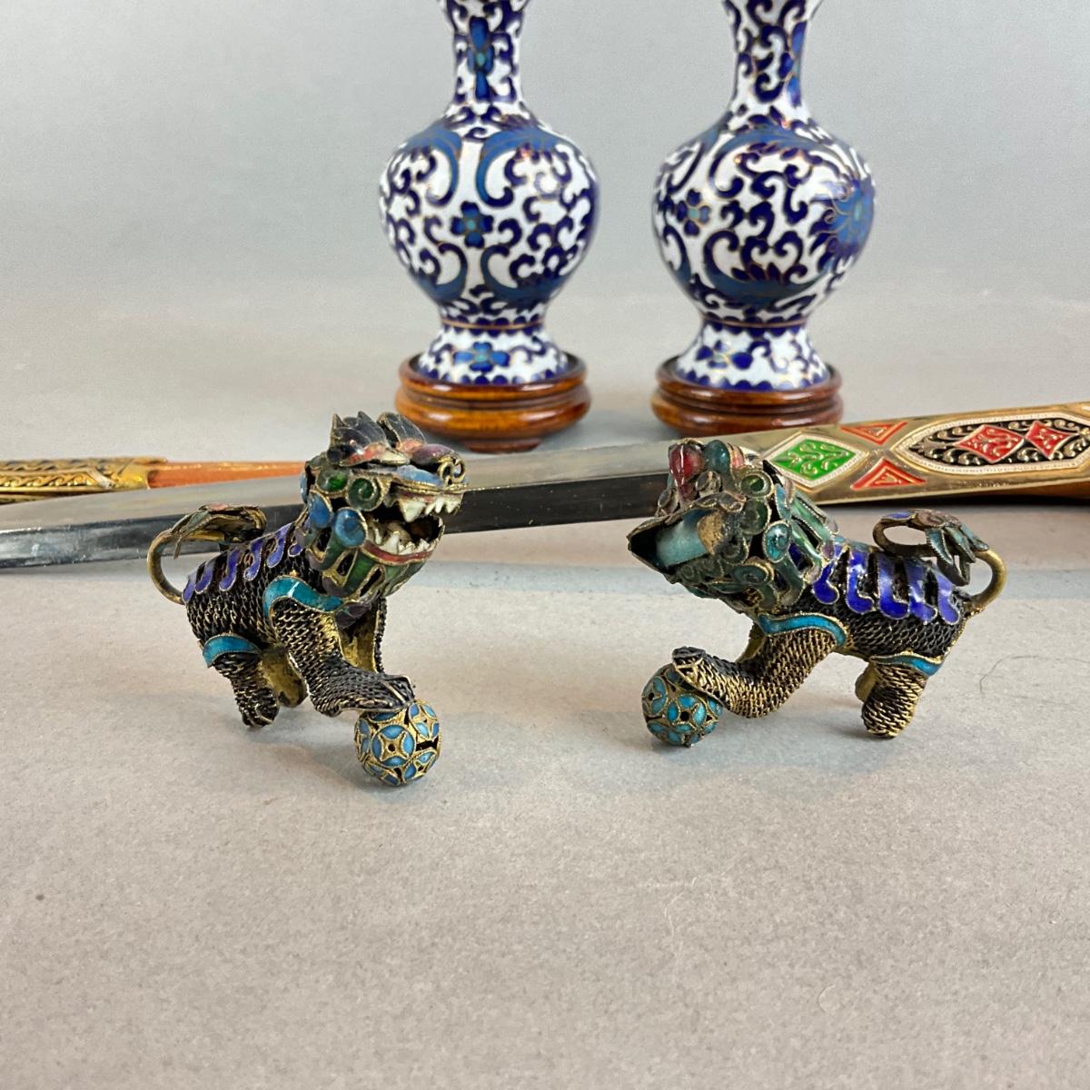 SR1427 Pair of Champlevé Miniature Foo Dogs and Cloisonné Mini Vases