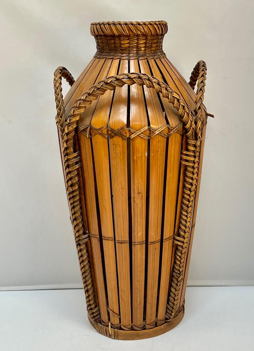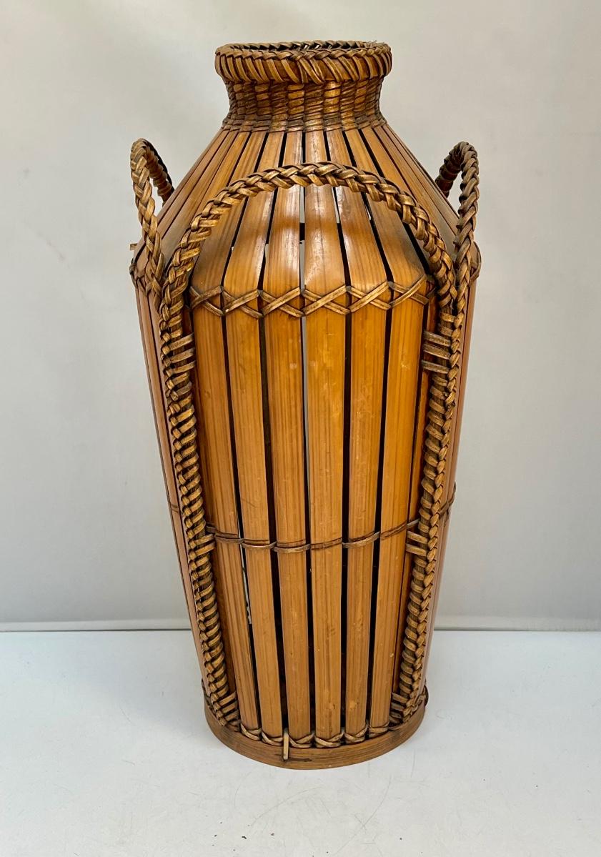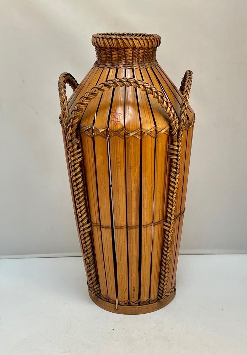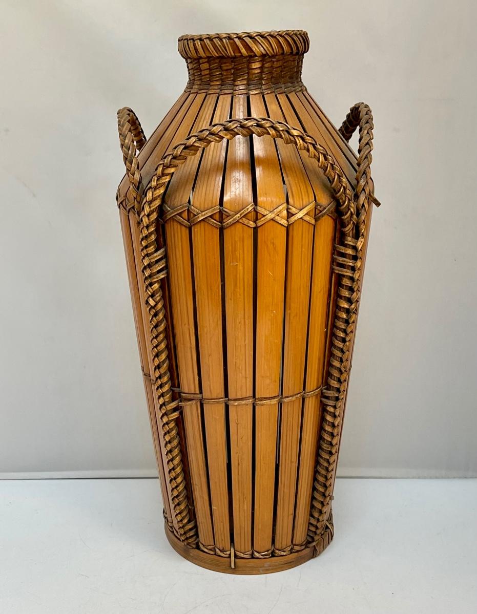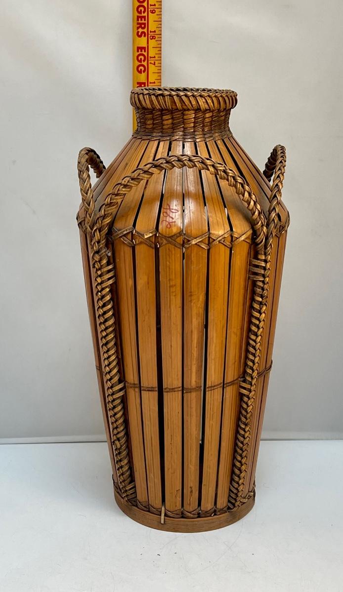 Retro Vintage Bamboo Reed Woven Vase Urn Basket. In good condition. About 16" tall. Can not be used with live flowers as it does not hold water.
