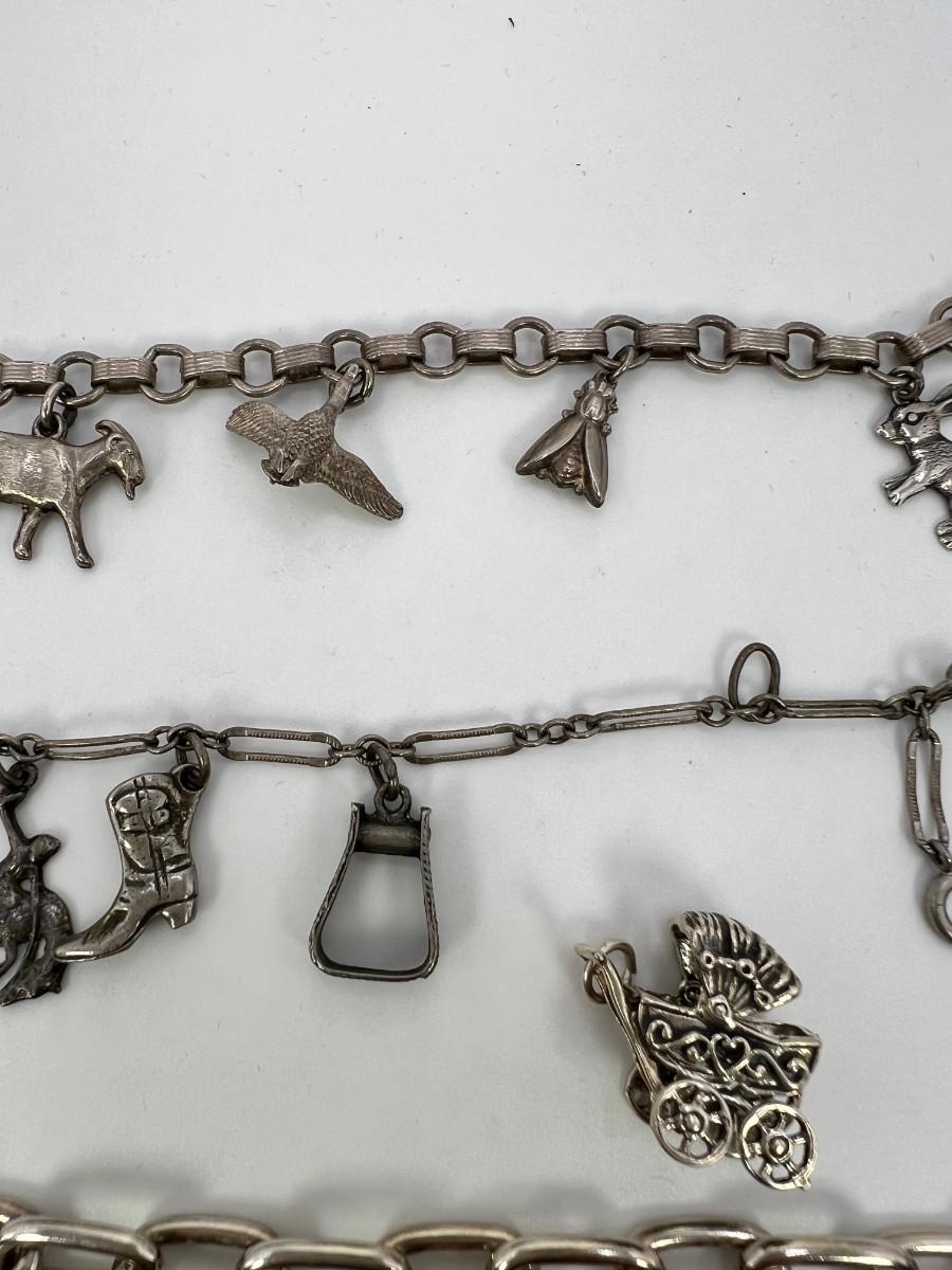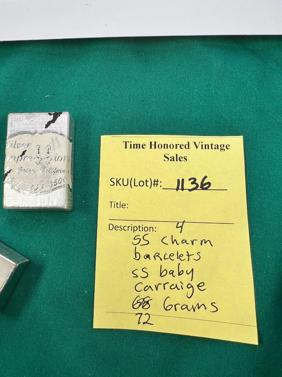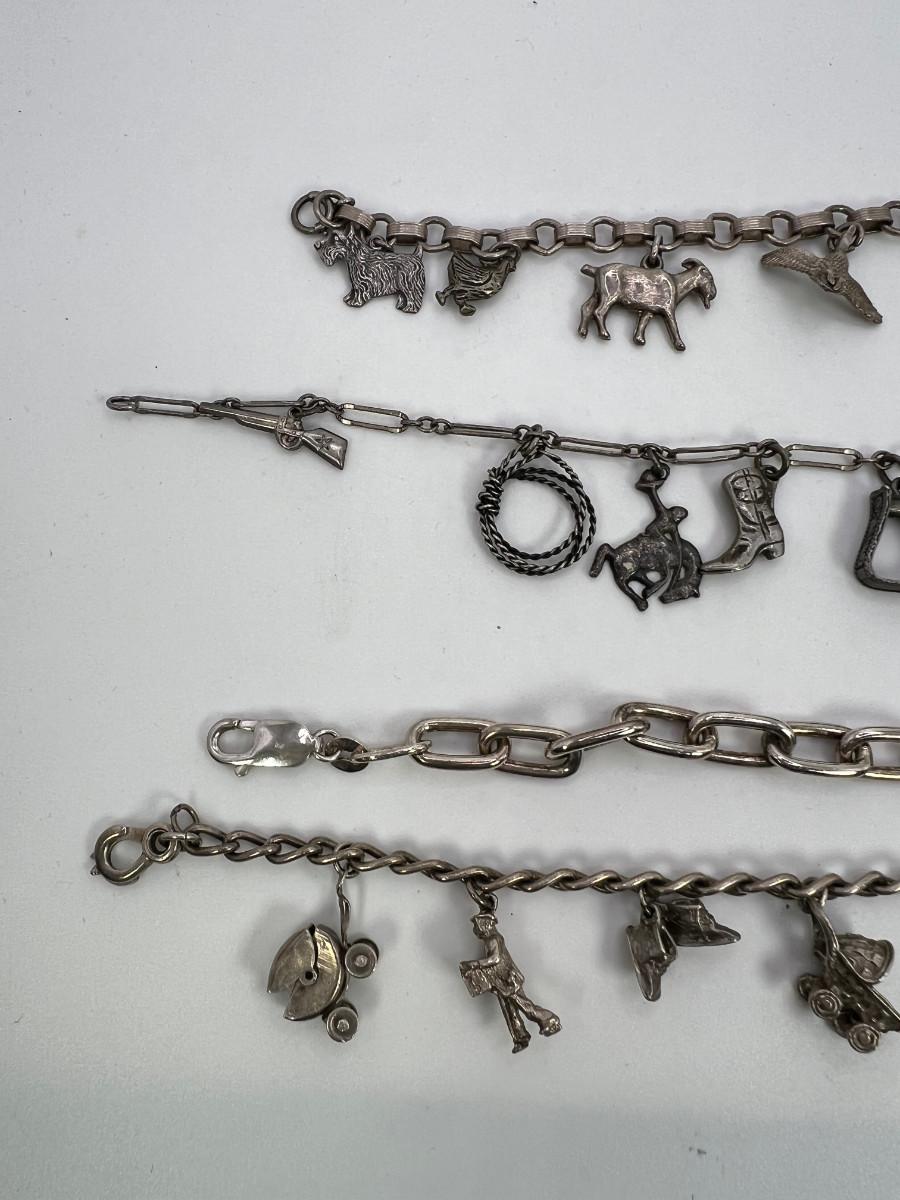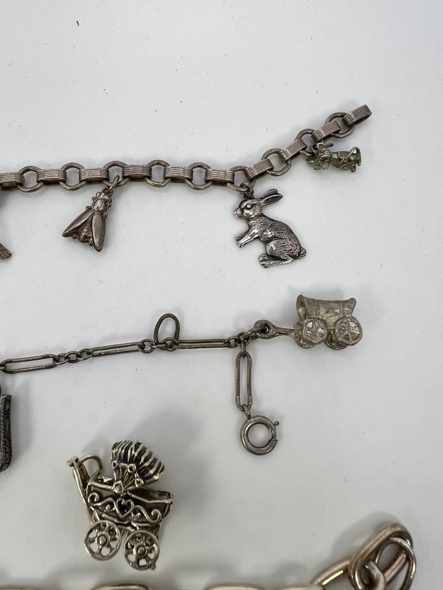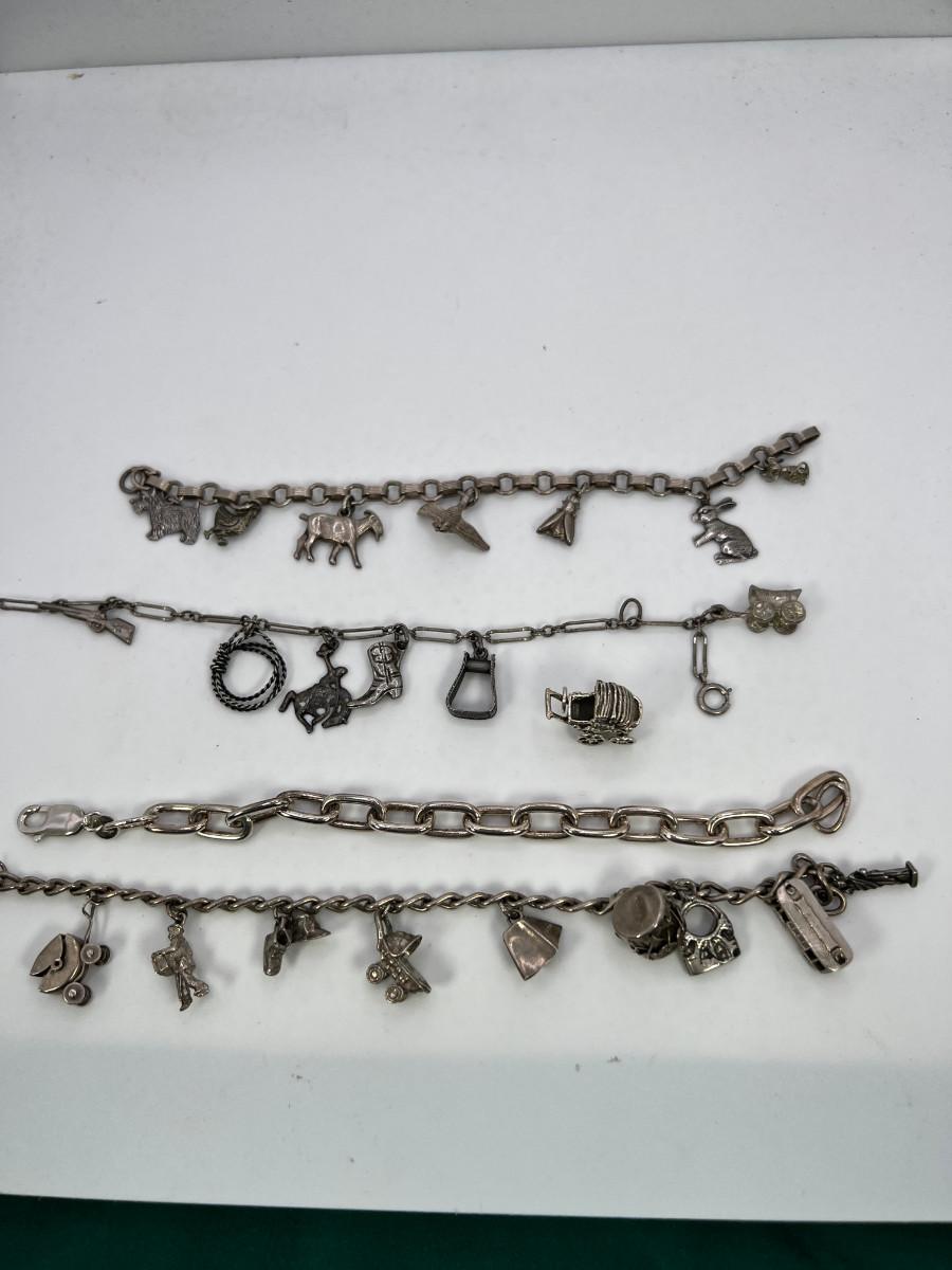 4 Sterling Charm bracelets, Vintage SS cast baby carriage Charm