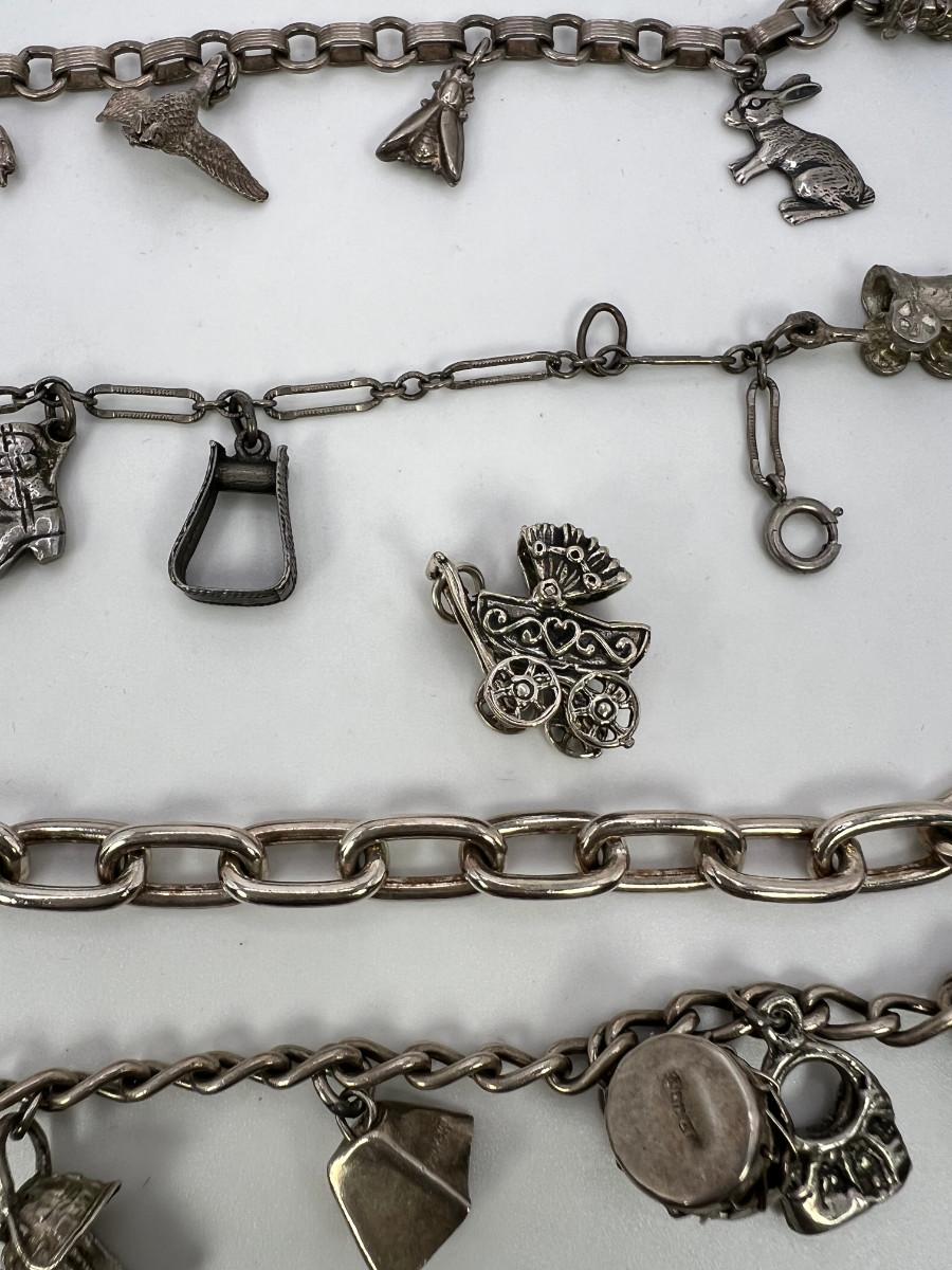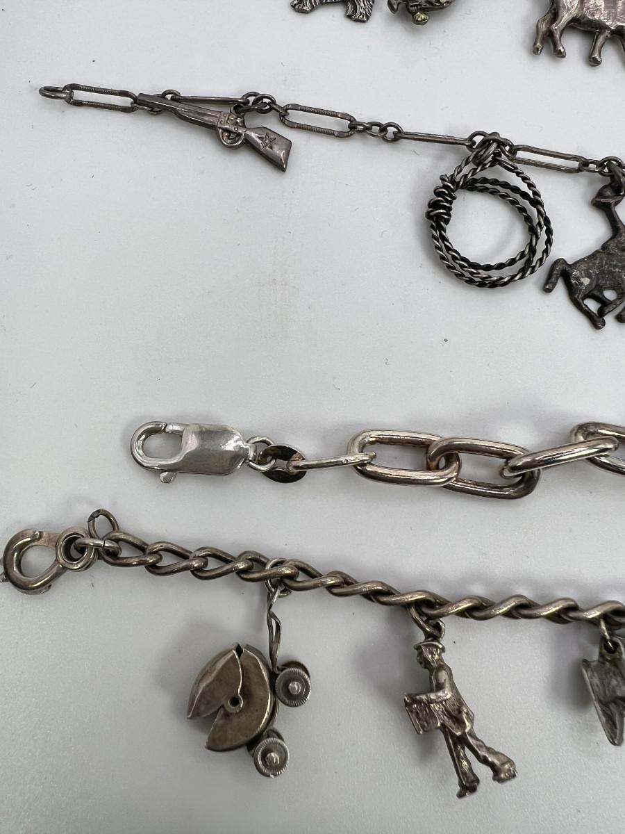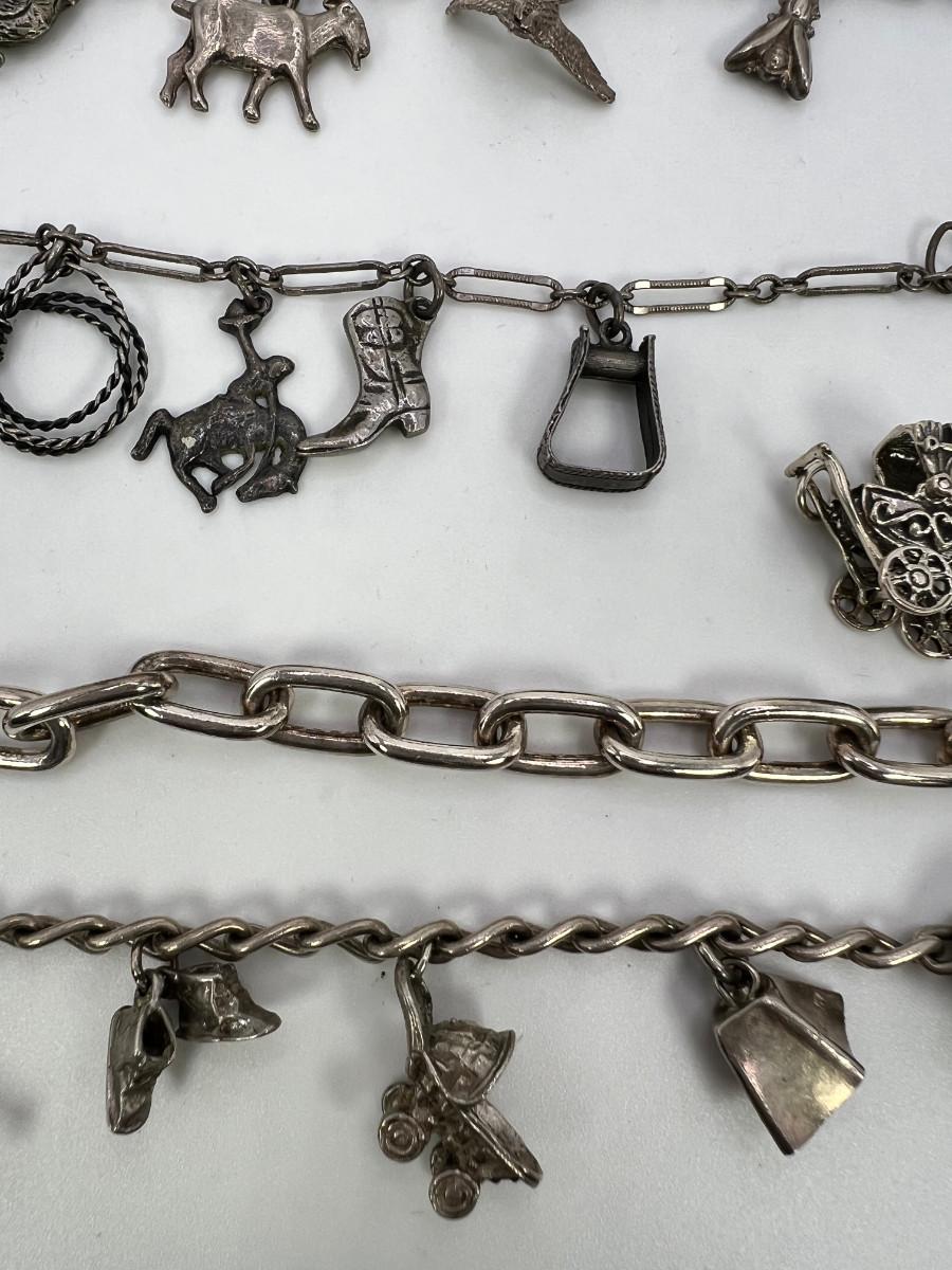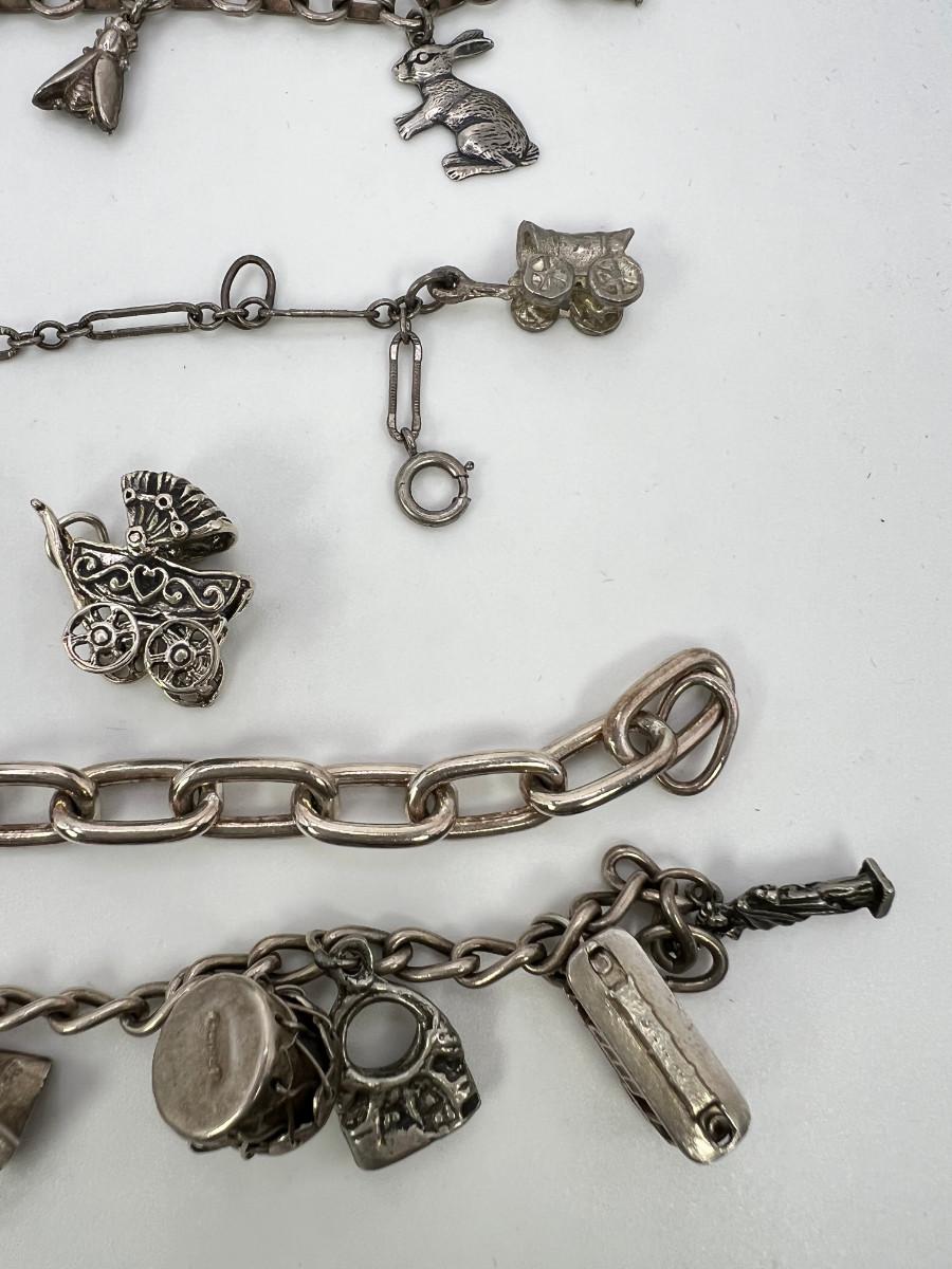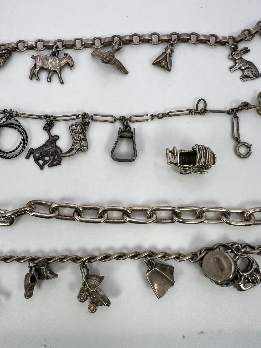 4 Sterling Charm bracelets, Vintage SS cast baby carriage Charm