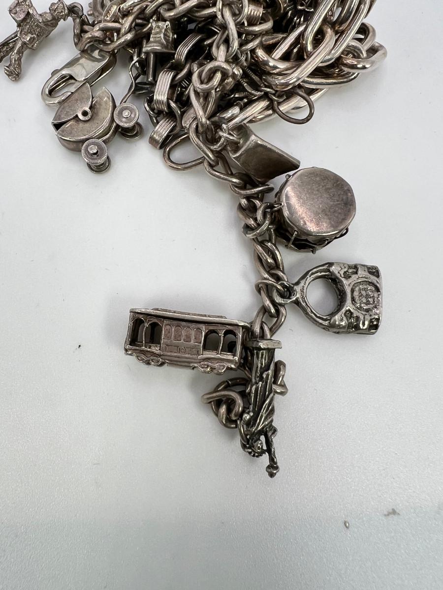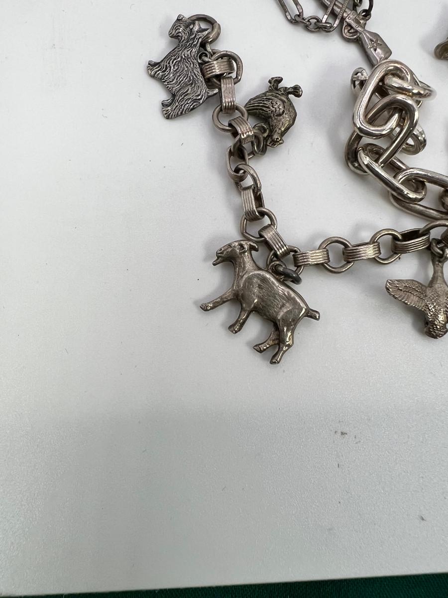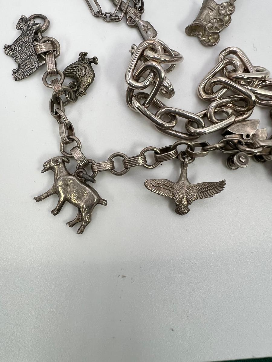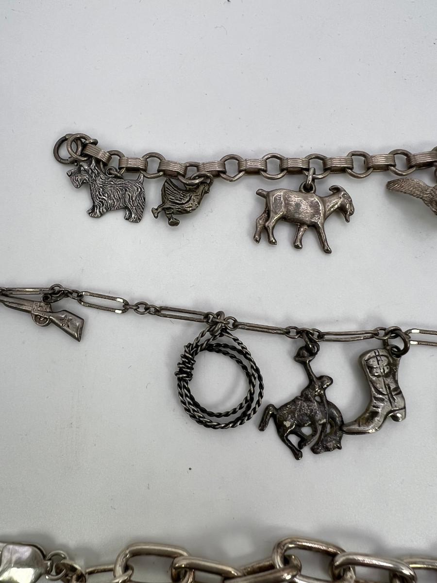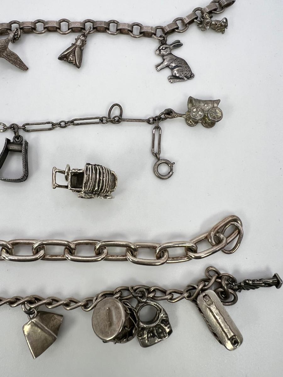4 Sterling Charm bracelets, Vintage SS cast baby carriage Charm