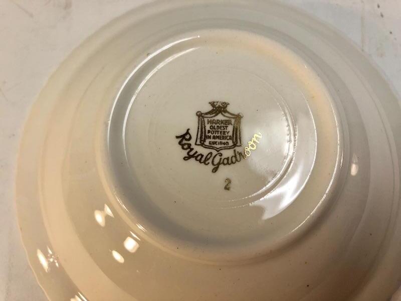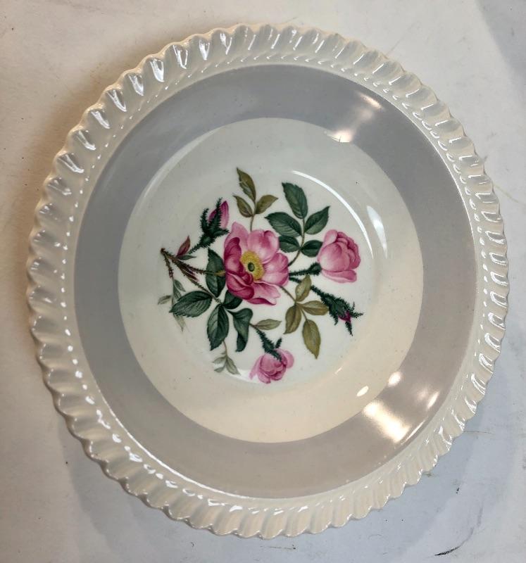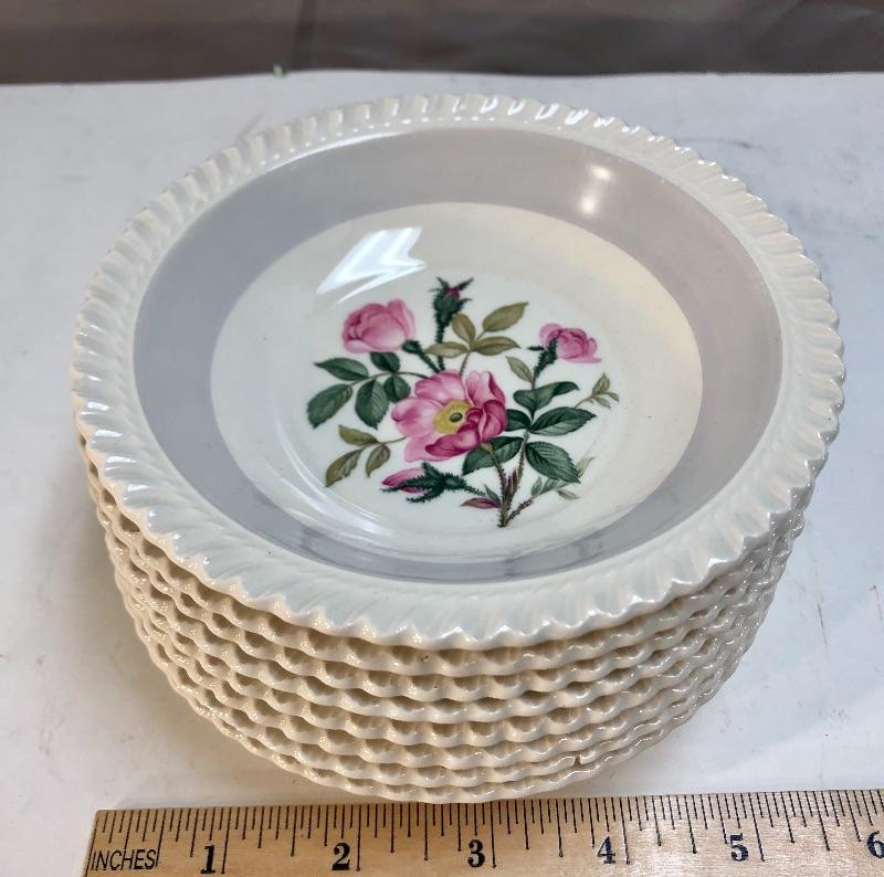 Set of 8 Harker Royal Gadroon fruit bowls. 6" size, pink rose flower in the center, crimped edge. Good condition.