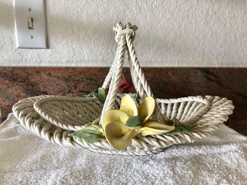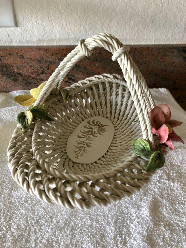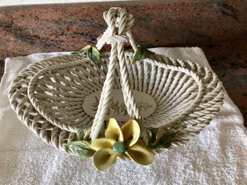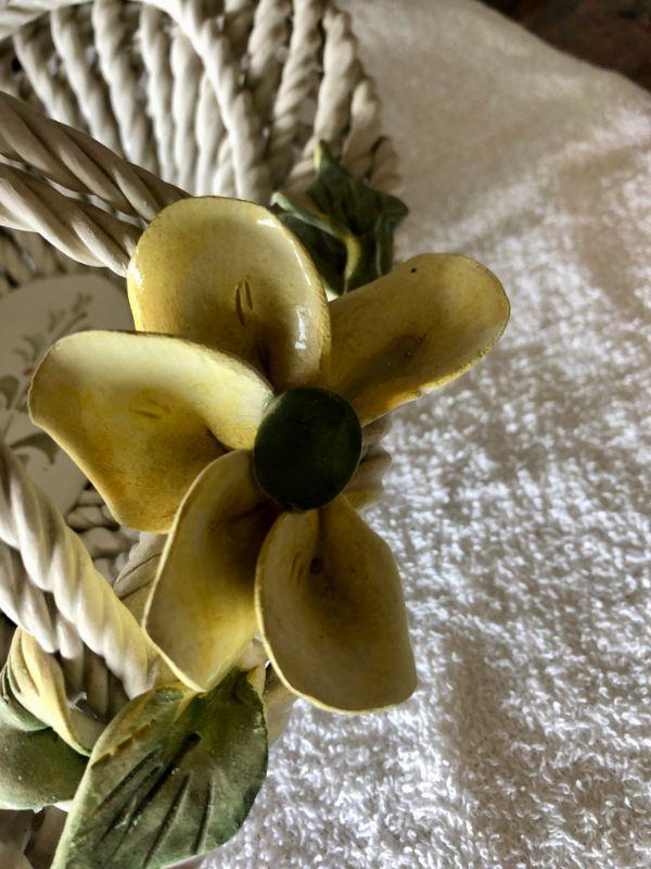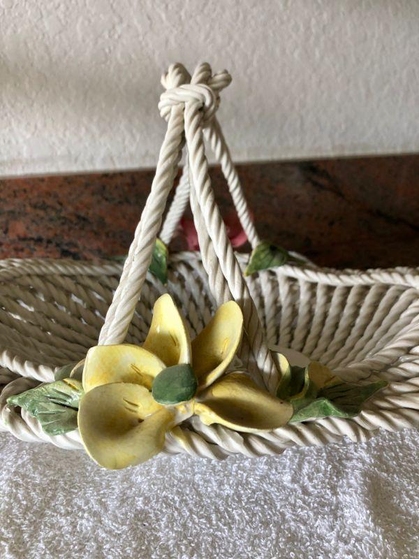 Capodimonte Yellow and Pink Flower Reticulated Porcelain Basket YD#022-0158