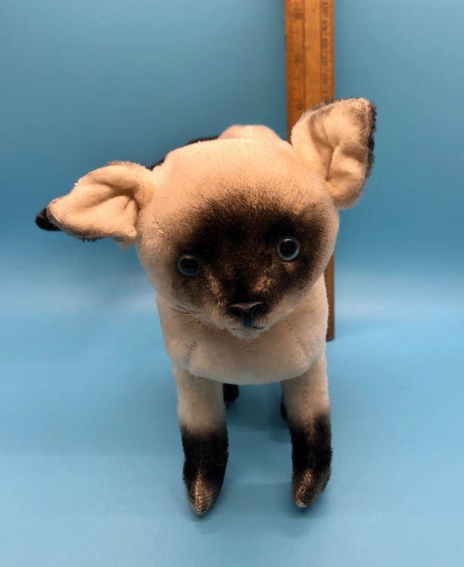 Vintage Siamese cat plush from Kamar. Made in Japan. Hunched back and long tail. No holes. #020-01074