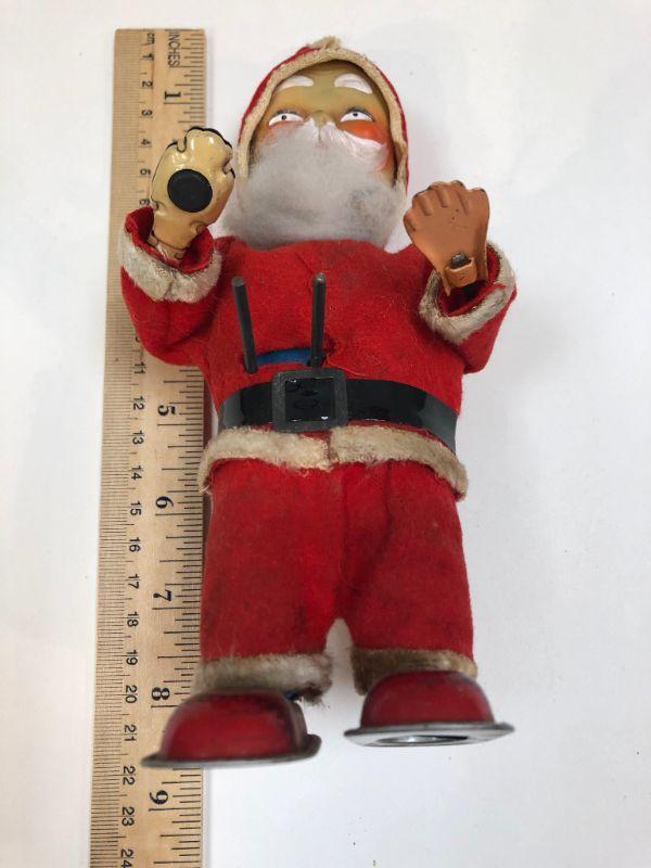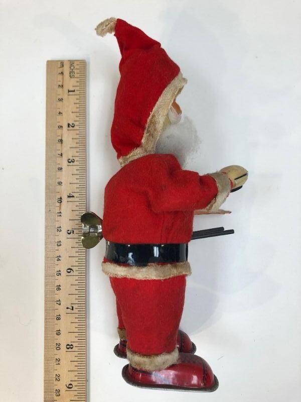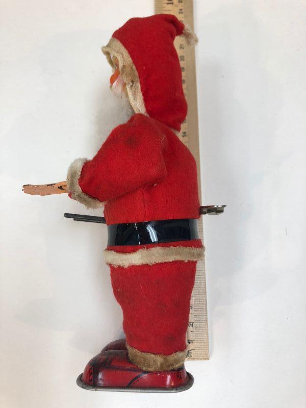 Vintage ALPS Wind-Up Mechanical Santa Claus Tin Toy Litho