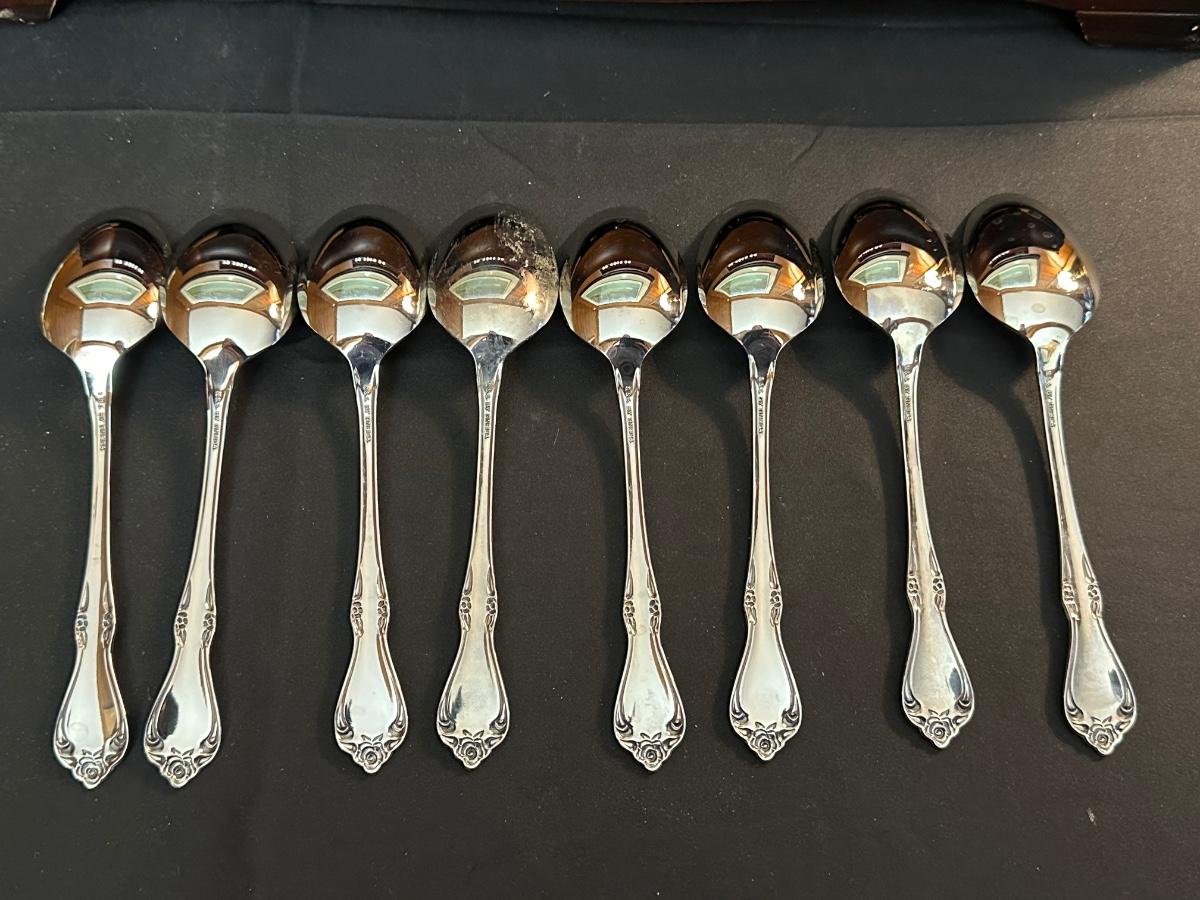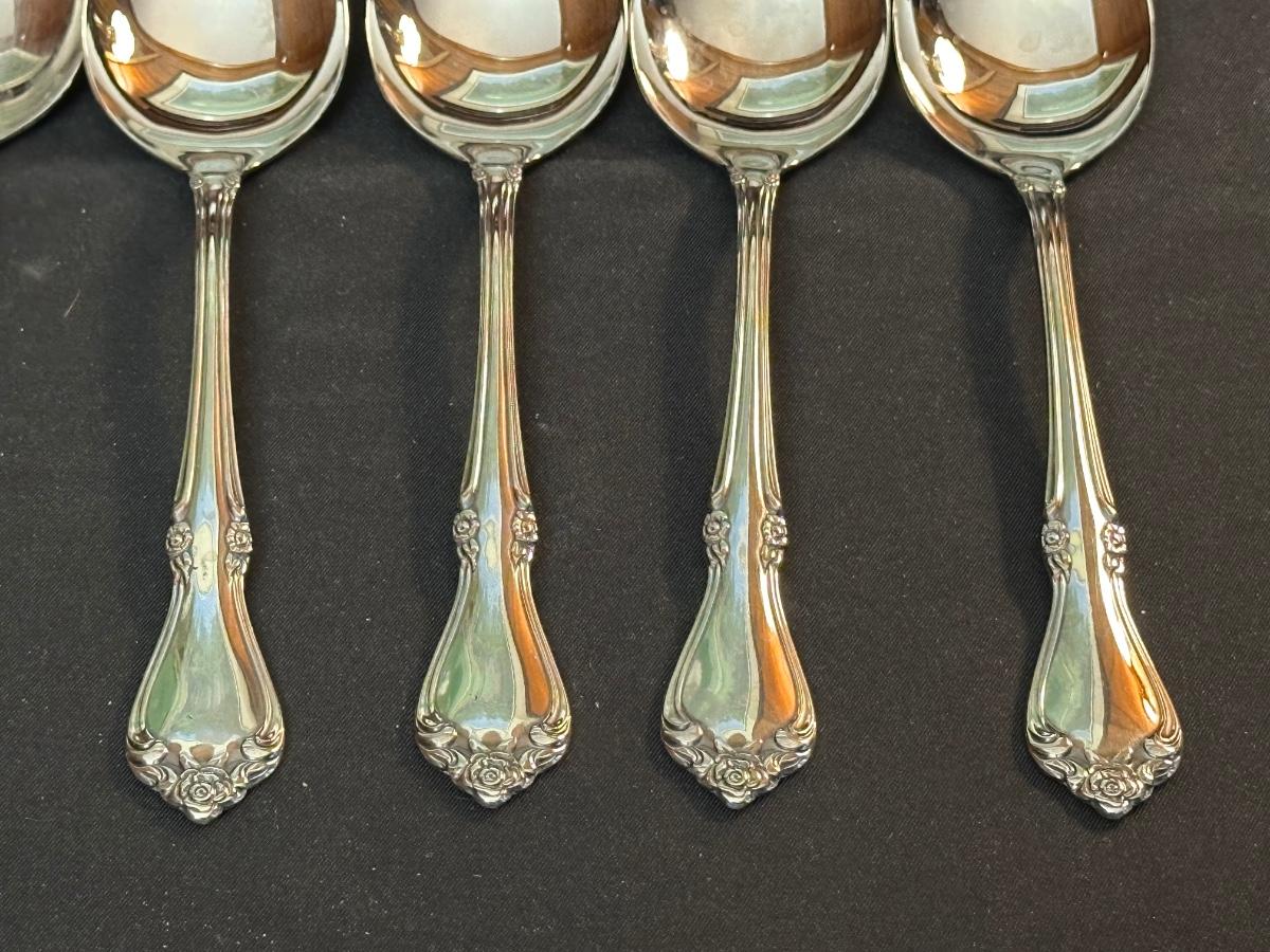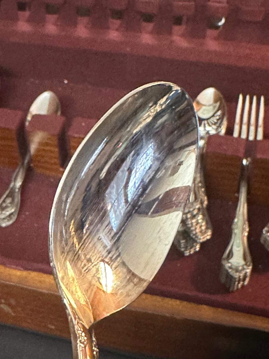 There are two spoons that do not match the set as pictured. They are monogrammed with an “R”