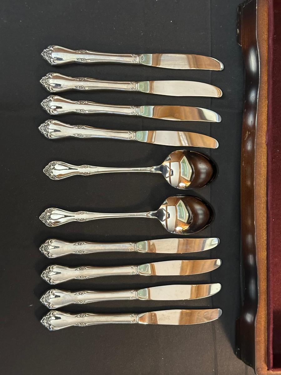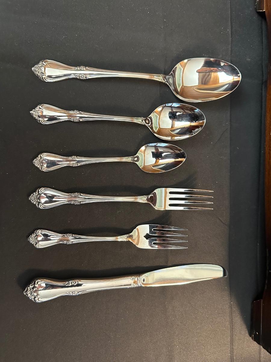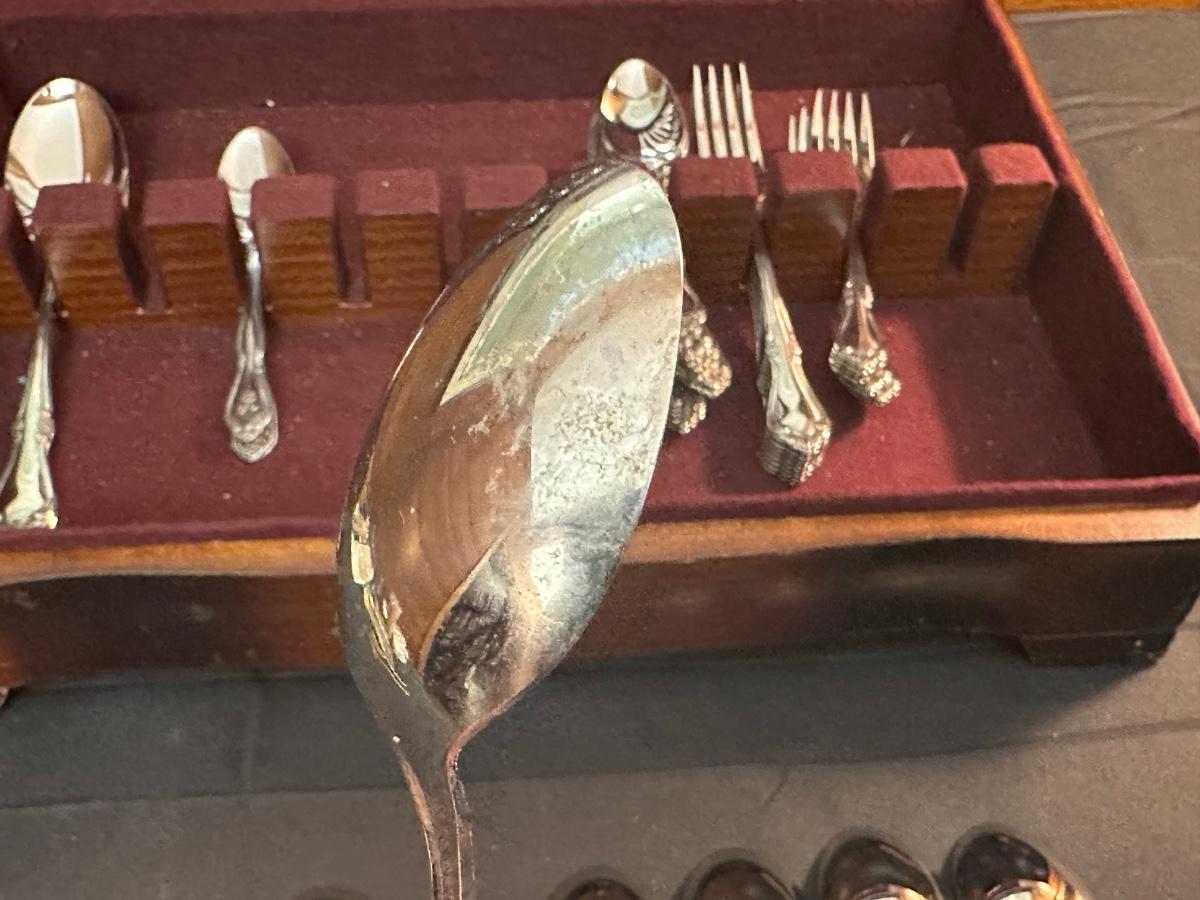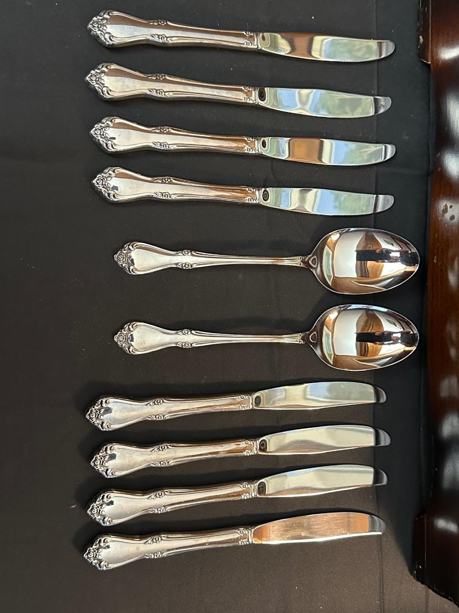 There are two spoons that do not match the set as pictured. They are monogrammed with an “R”