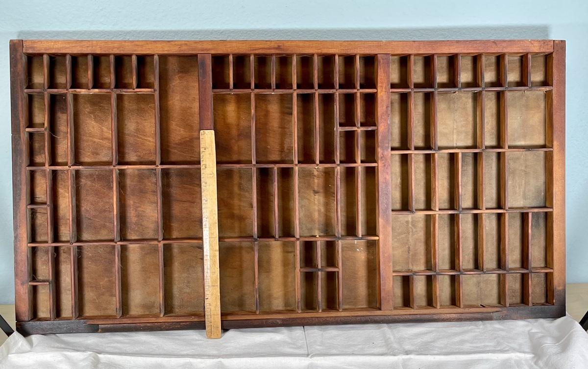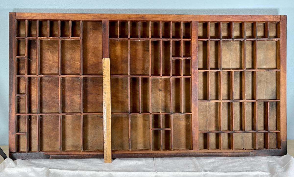 Antique Vintage Wood Letterpress Type Tray. About 3' length. Good vintage condition.