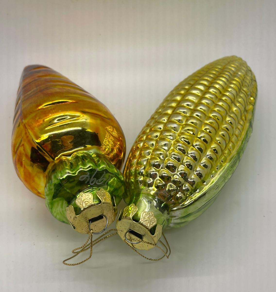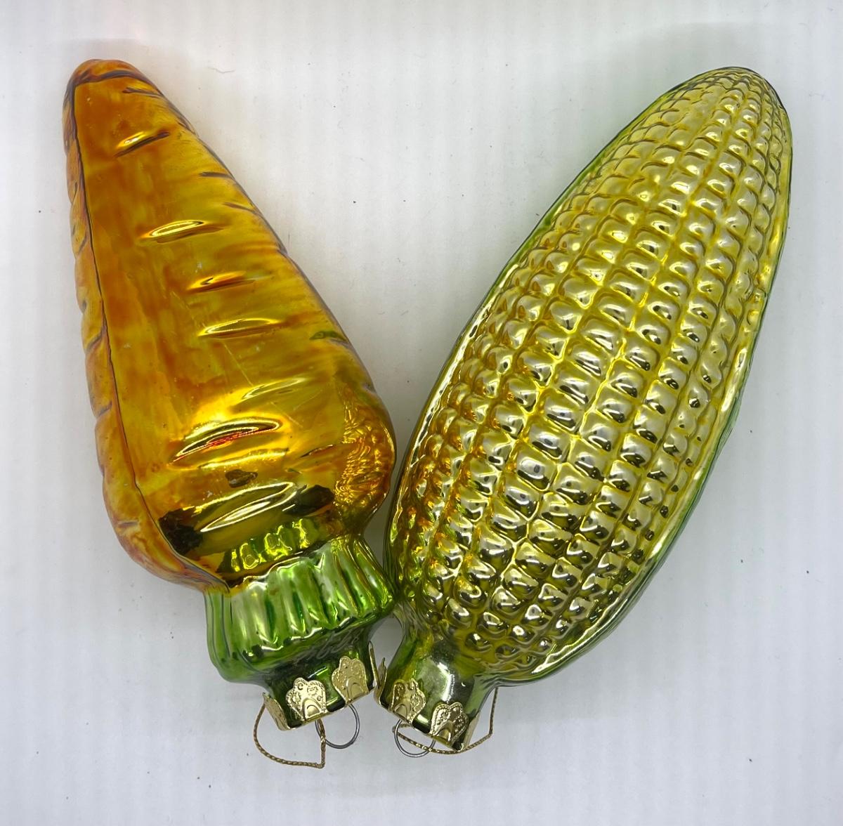 Vintage Blown Mercury Glass Carrot and Corn on the Cob Unusual Christmas Ornaments Holiday Tradition