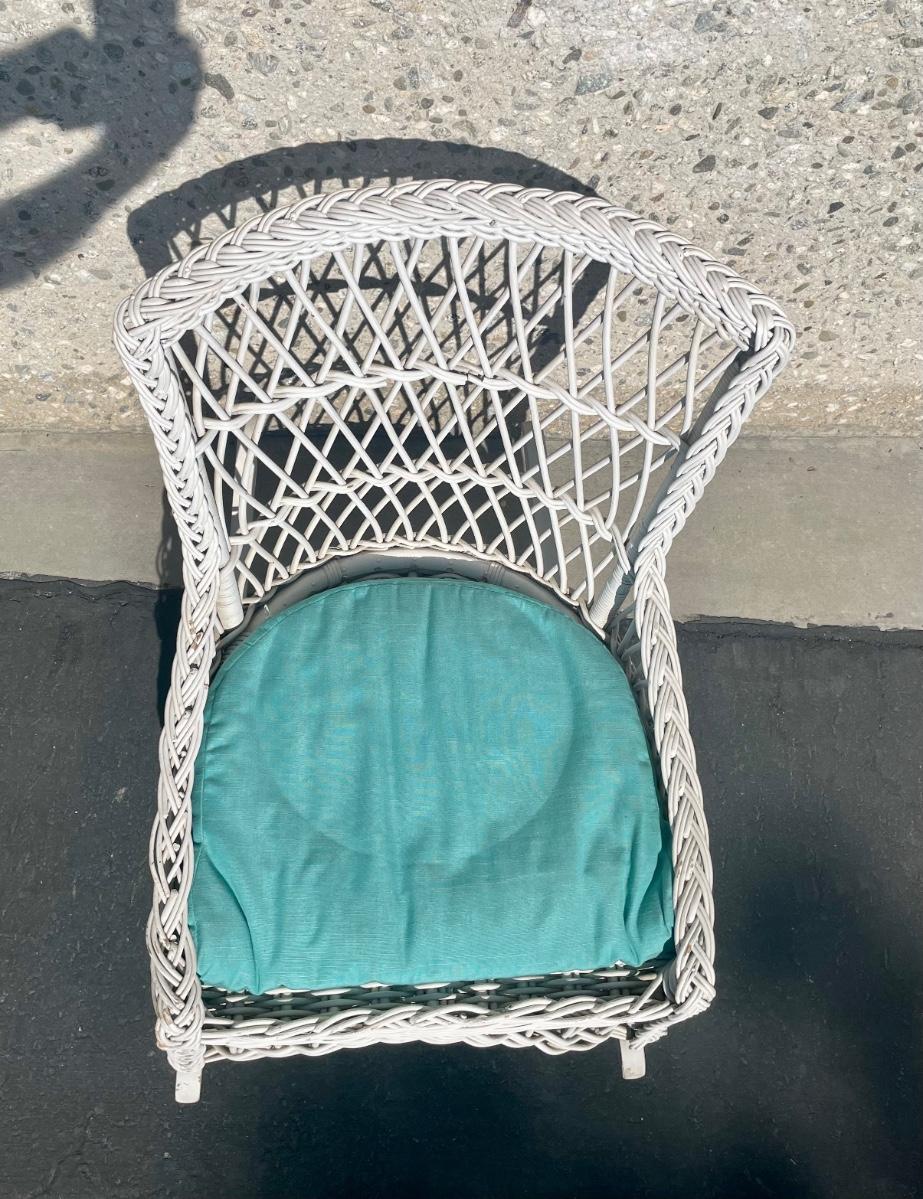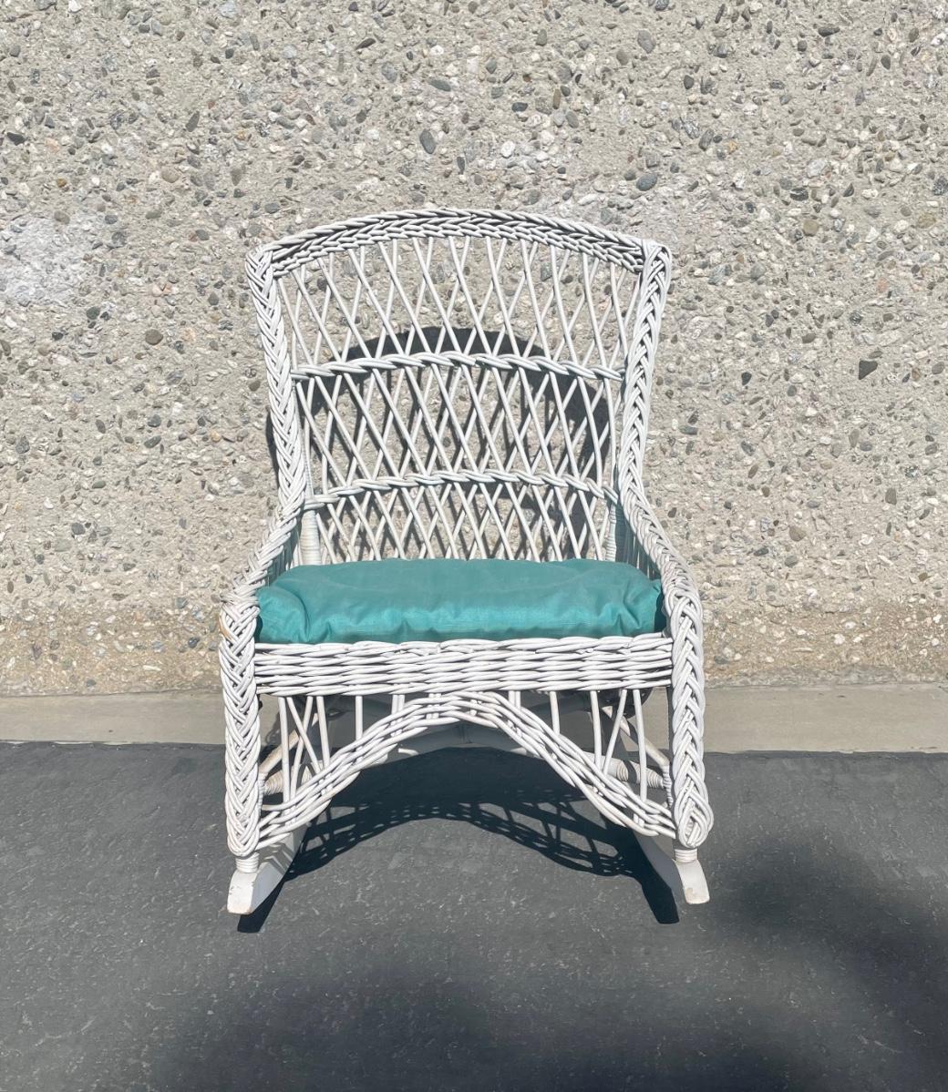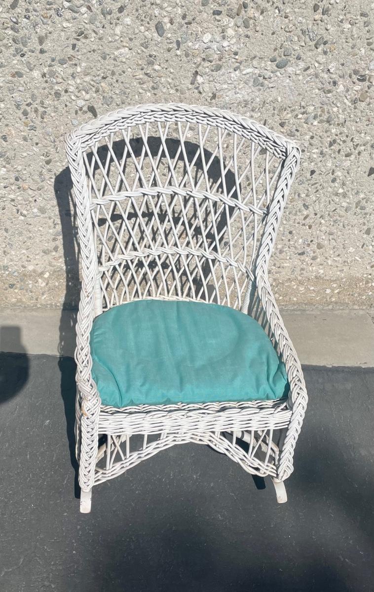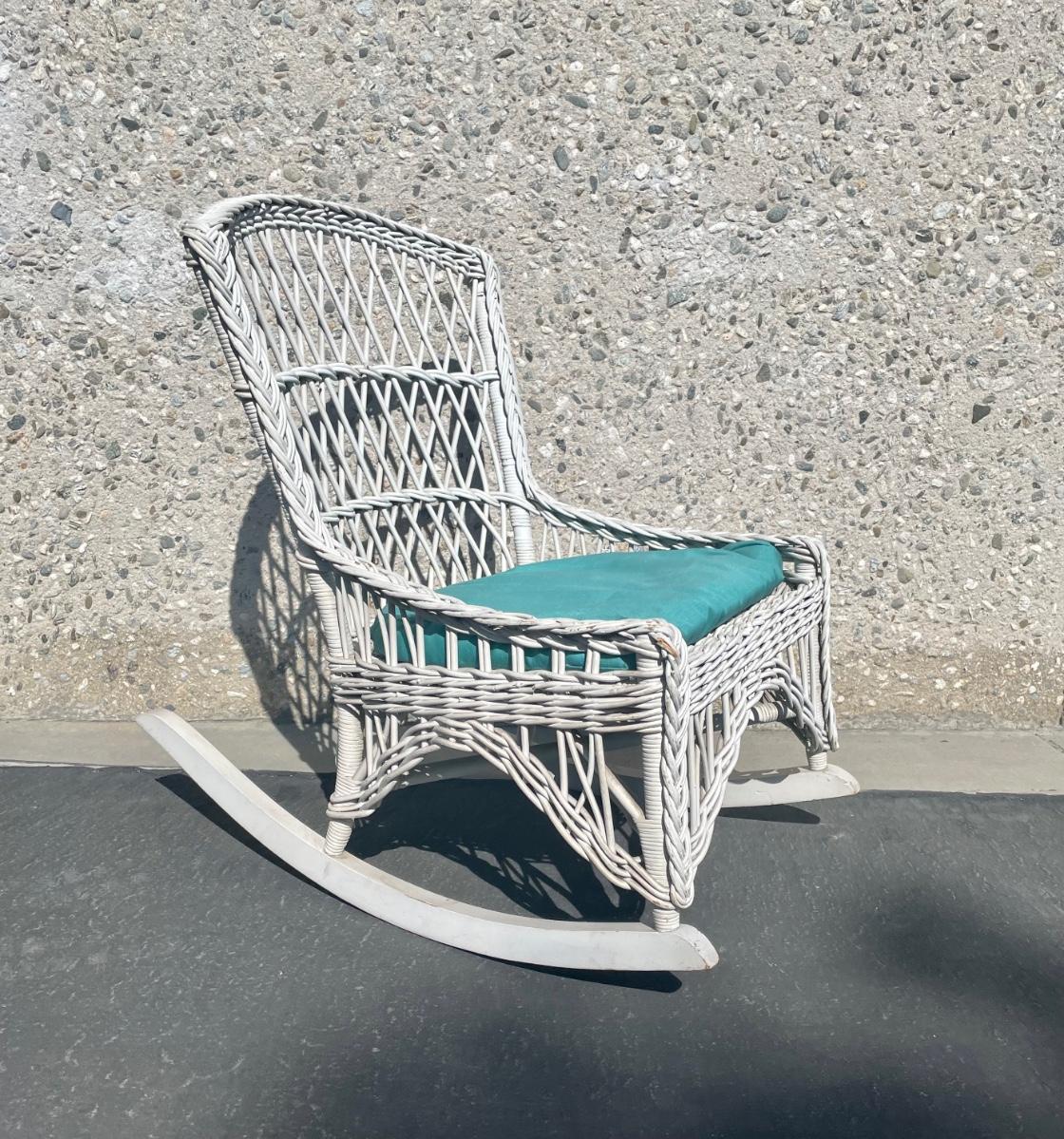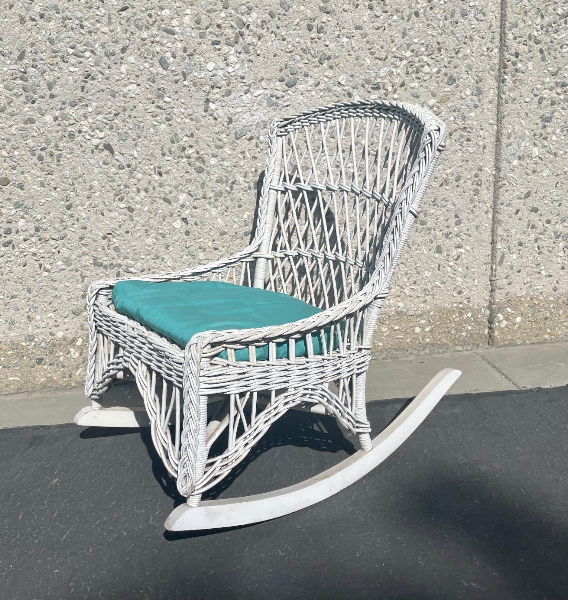 Antique Vintage White Wicker Rocking Chair with Seat Cushion