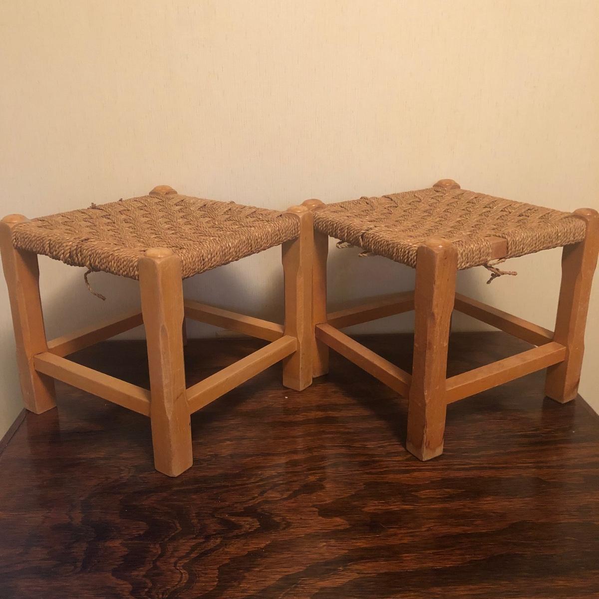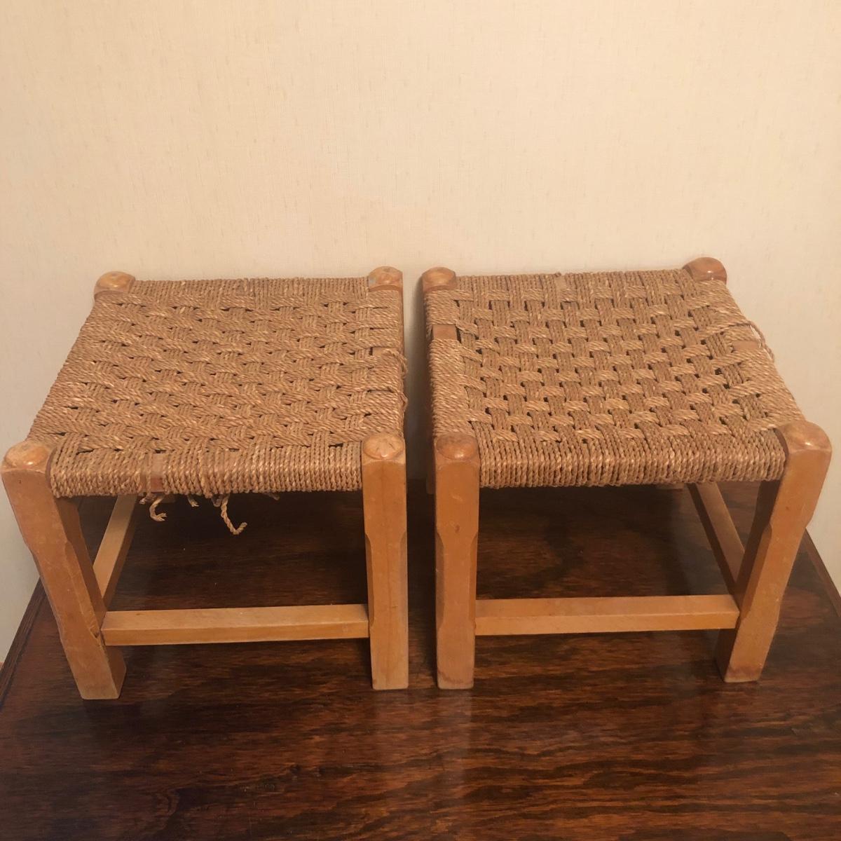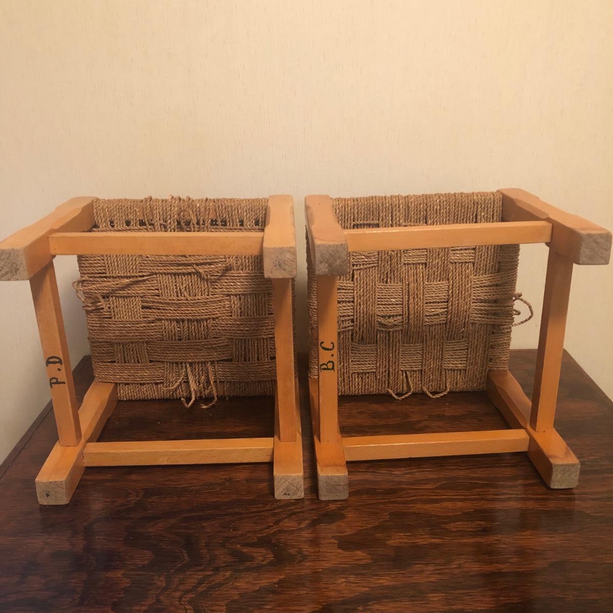 2 Matching Wooden Stools with Woven Seats (BGB-JF)