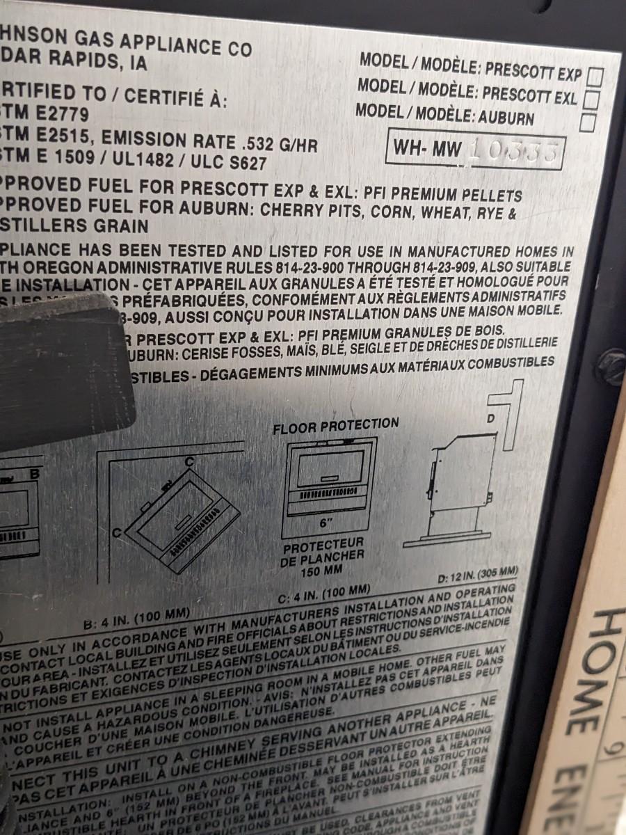 The St. Croix Prescott EXP has the ability of producing up to 40,000 BTU’s. Depending on climate and home efficiency, it will heat between 600 and 1,800 square feet.