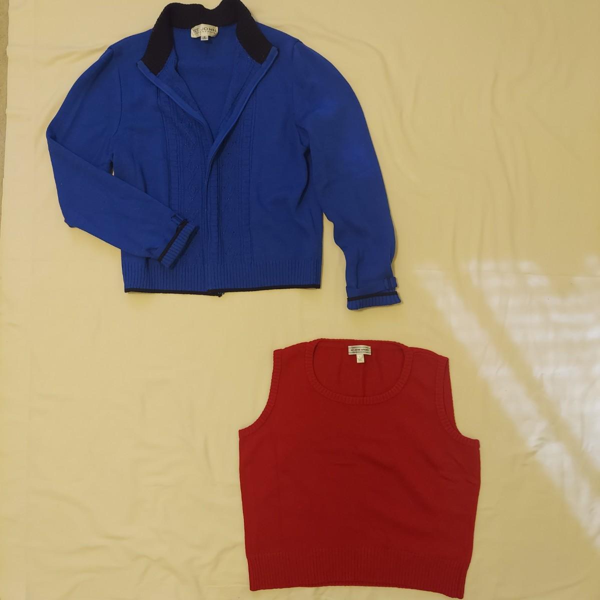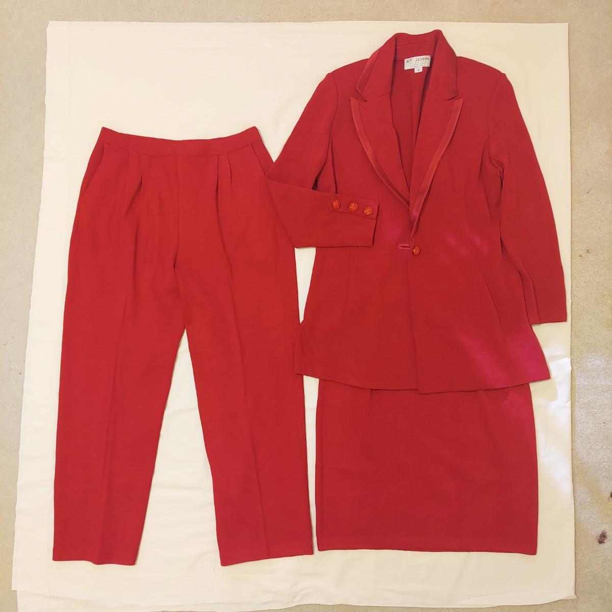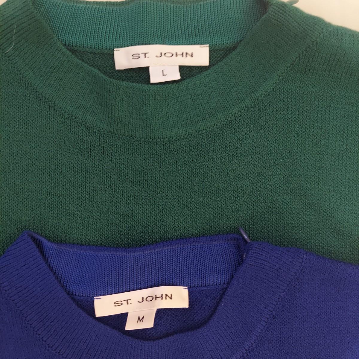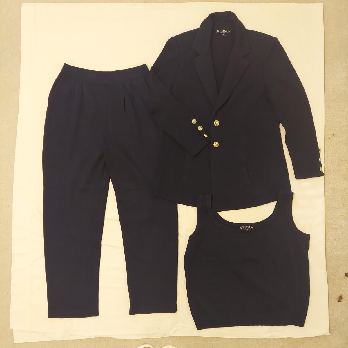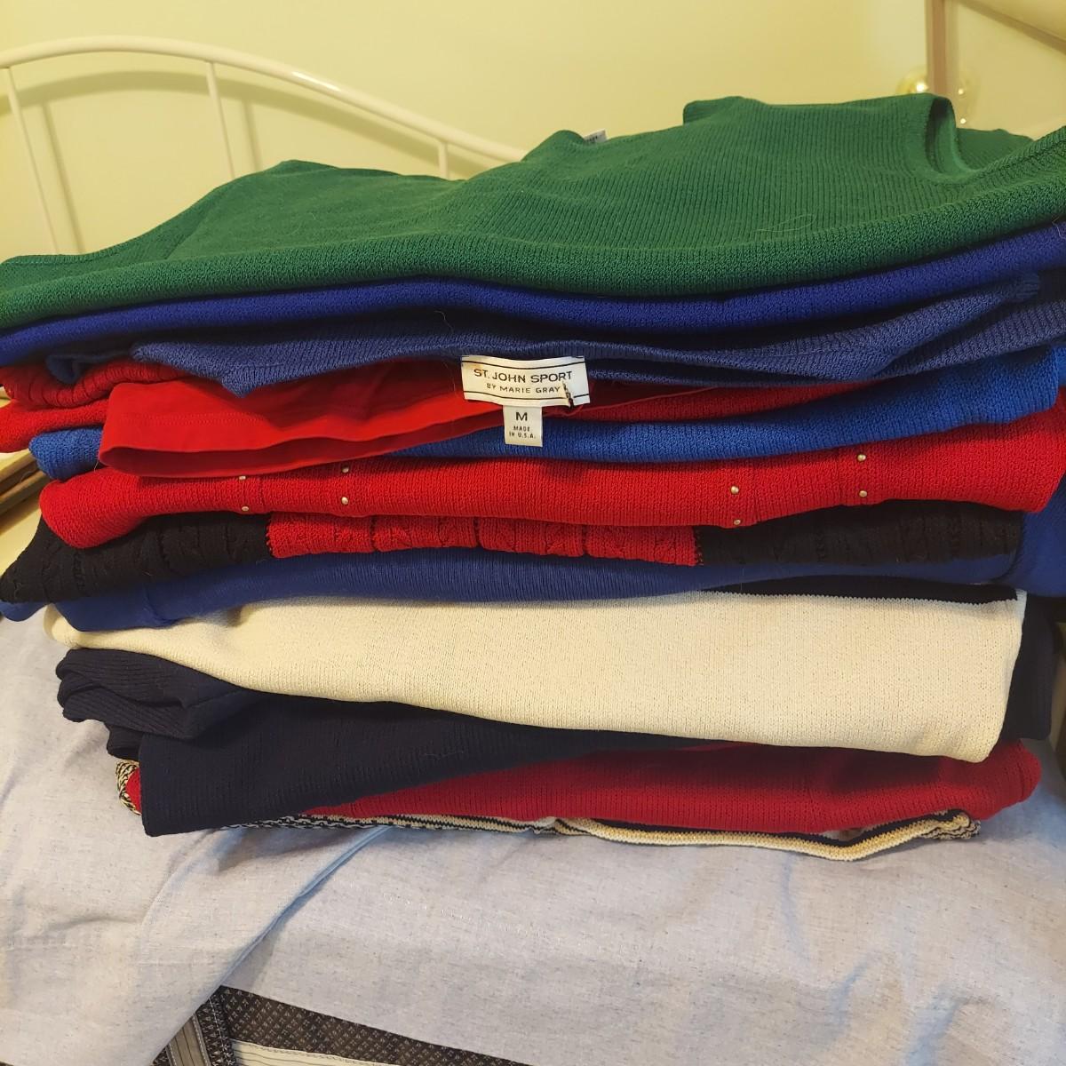 Lot includes 20+ pieces of their signature knit wear by St. John Collection. Most pieces are size 12/large. Items are from a pet friendly home and have fur present. Some items have light spots. Will need to be laundered. Please see photos for details. Shipping available