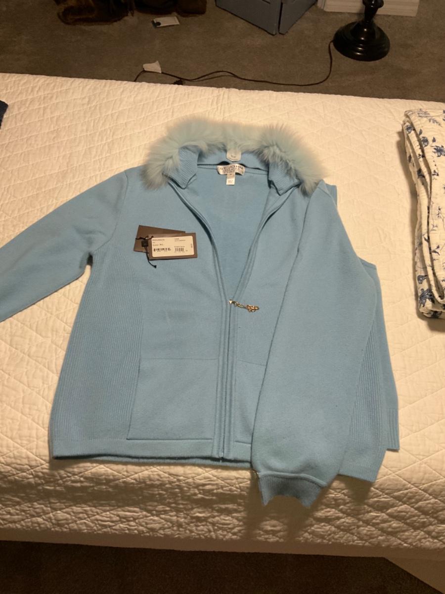 Sleeves sweater with Top long sleeve Cashmere sweater with brass fittings and Fox Fur removable collar